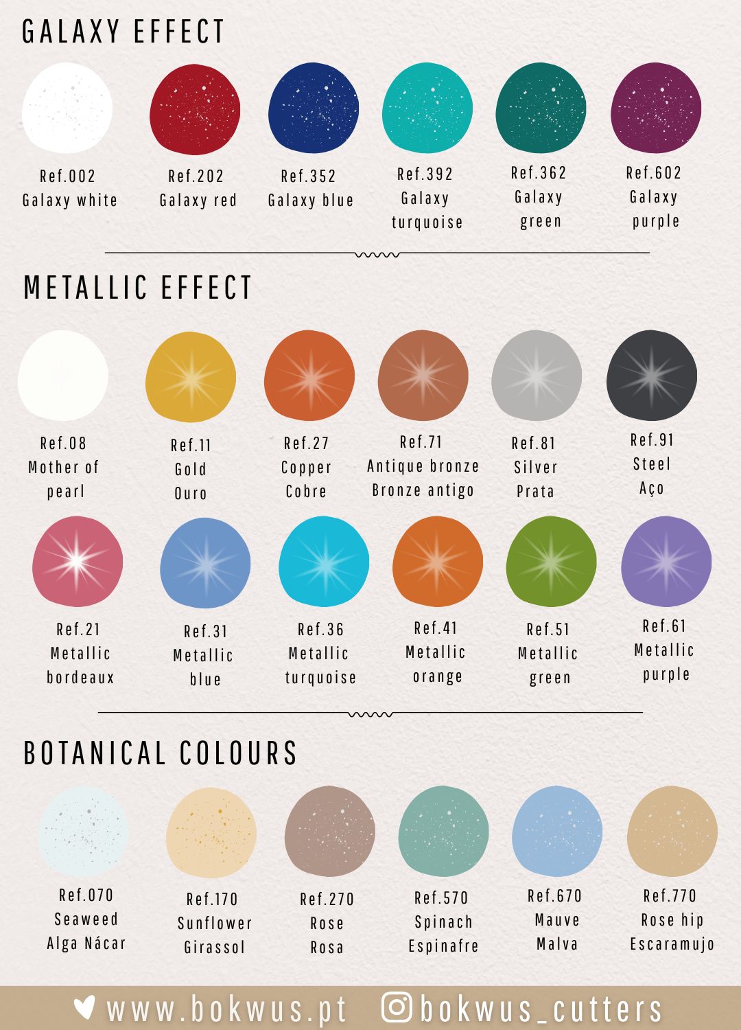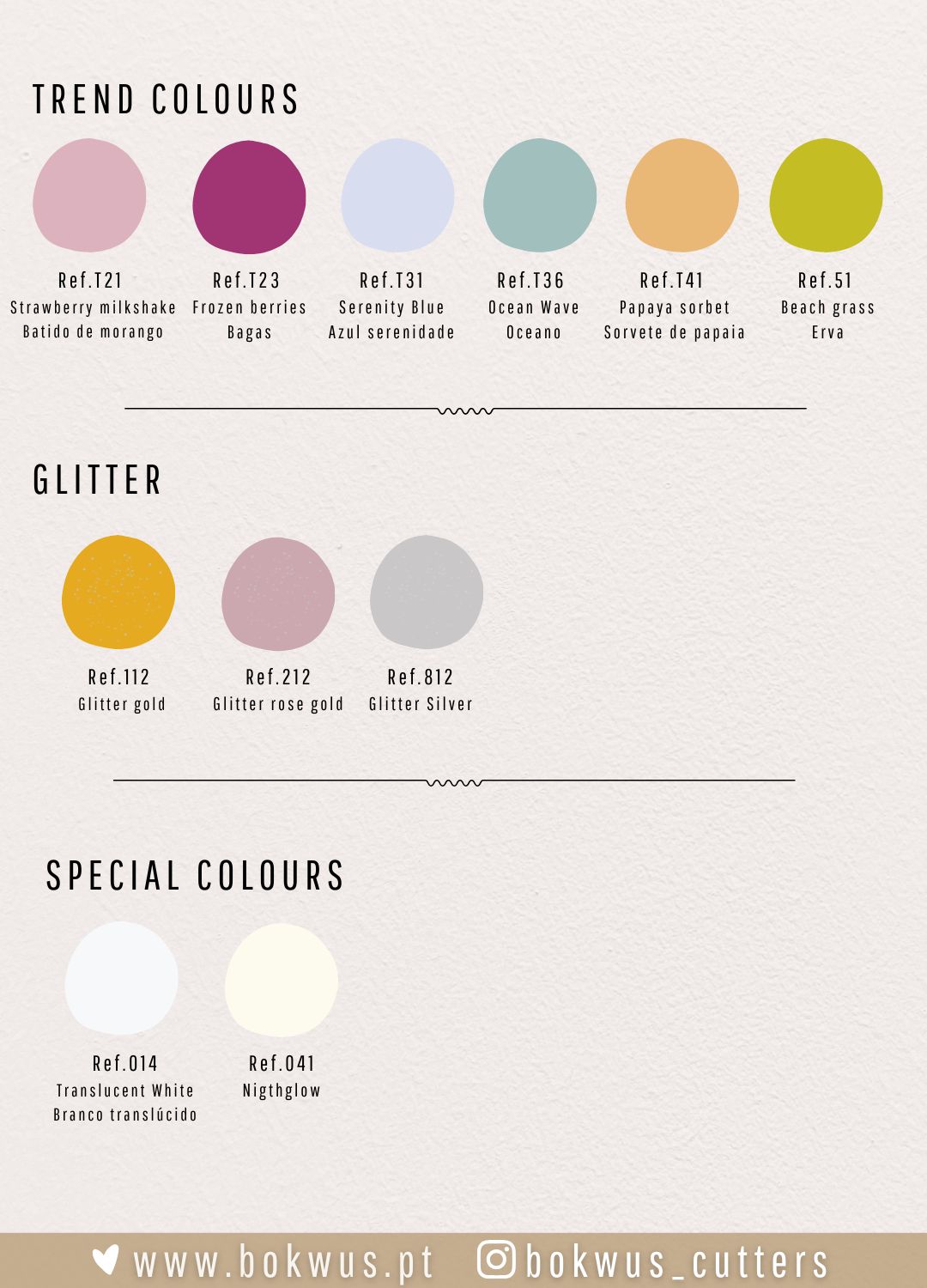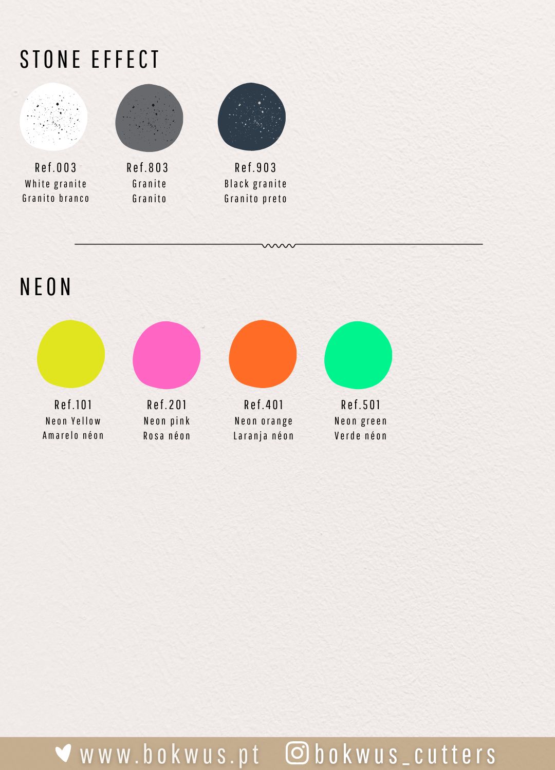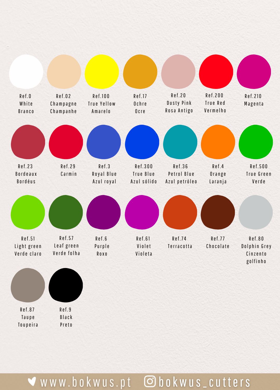 São cores sólidas, modernas e ideais para dar um toque atual às tuas peças.