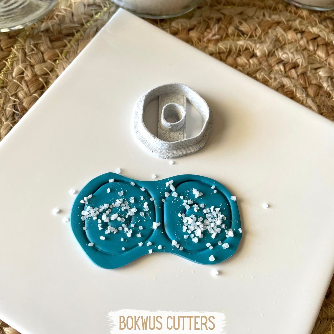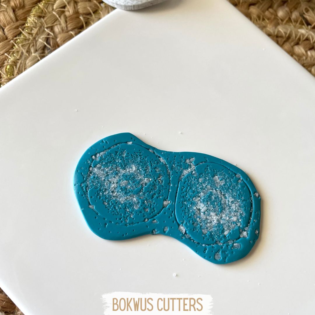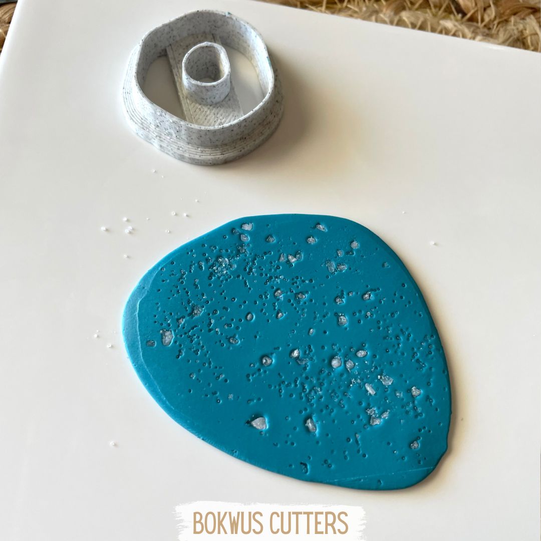Os passos anteriores podem ser repetidos em peças planas. Para isso basta esticar a massa com a espessura pretendida, salpicar com sal (a quantidade de sal e o tipo grosso/fino vai determinar quão acentuado ficará o efeito lava no final) e pressionar com uma folha de papel para que o sal fique bem incrustado na superficie. Podem utilizar o que restar da massa para fazer contas tambem com efeito lava.