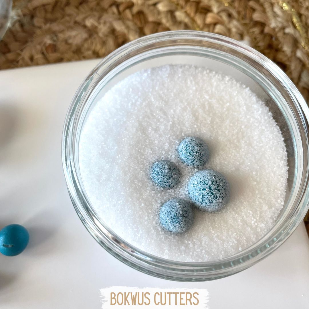 3º passo - passar as bolinhas por sal grosso ou fino de forma a que fiquem cobertas na totalidade.