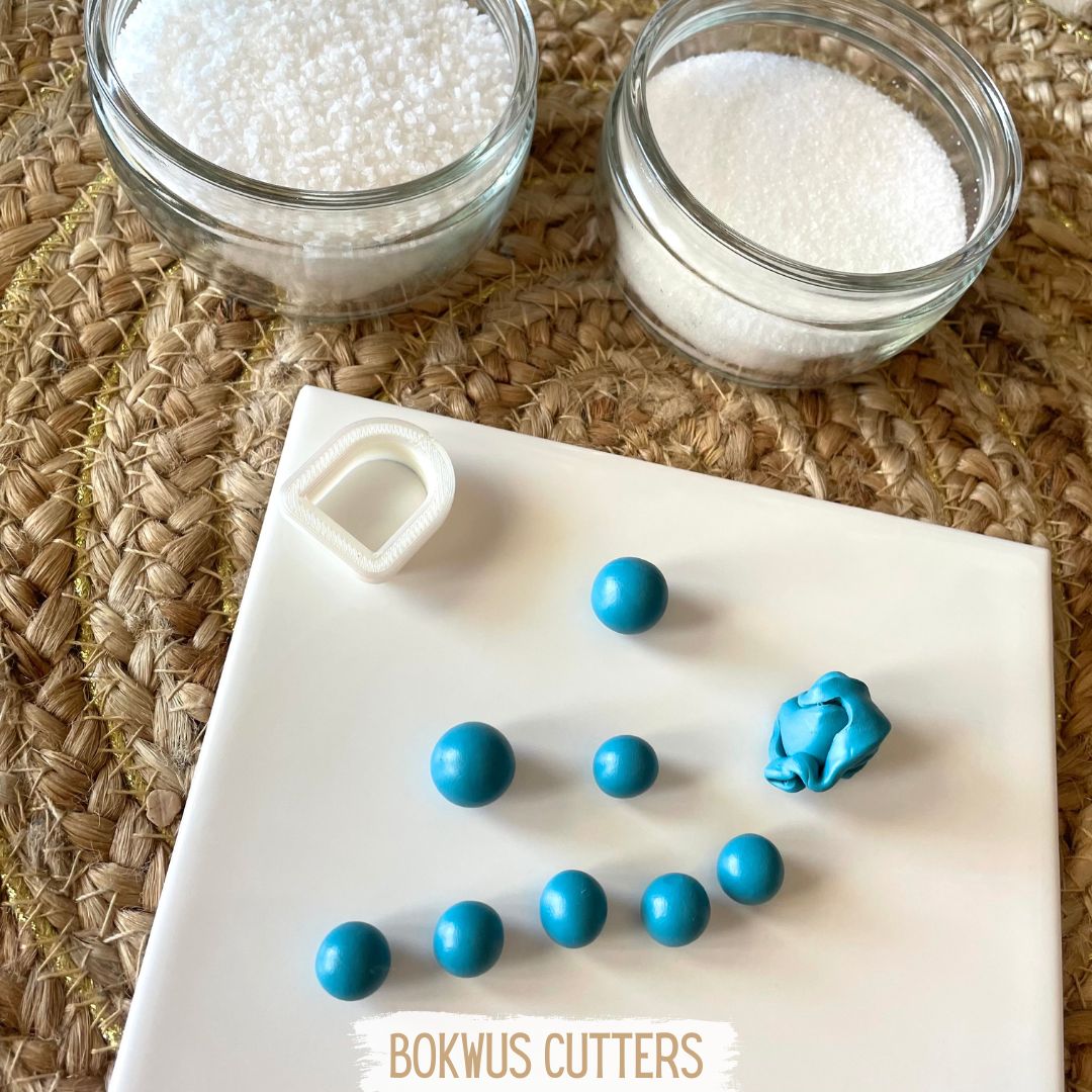 1º passo - esticar a cerâmica plástica na máquina de esticar massa e cortar com um cortador ao vosso gosto. Desta forma garantem que todas as contas irão ficar com a mesma dimensão.