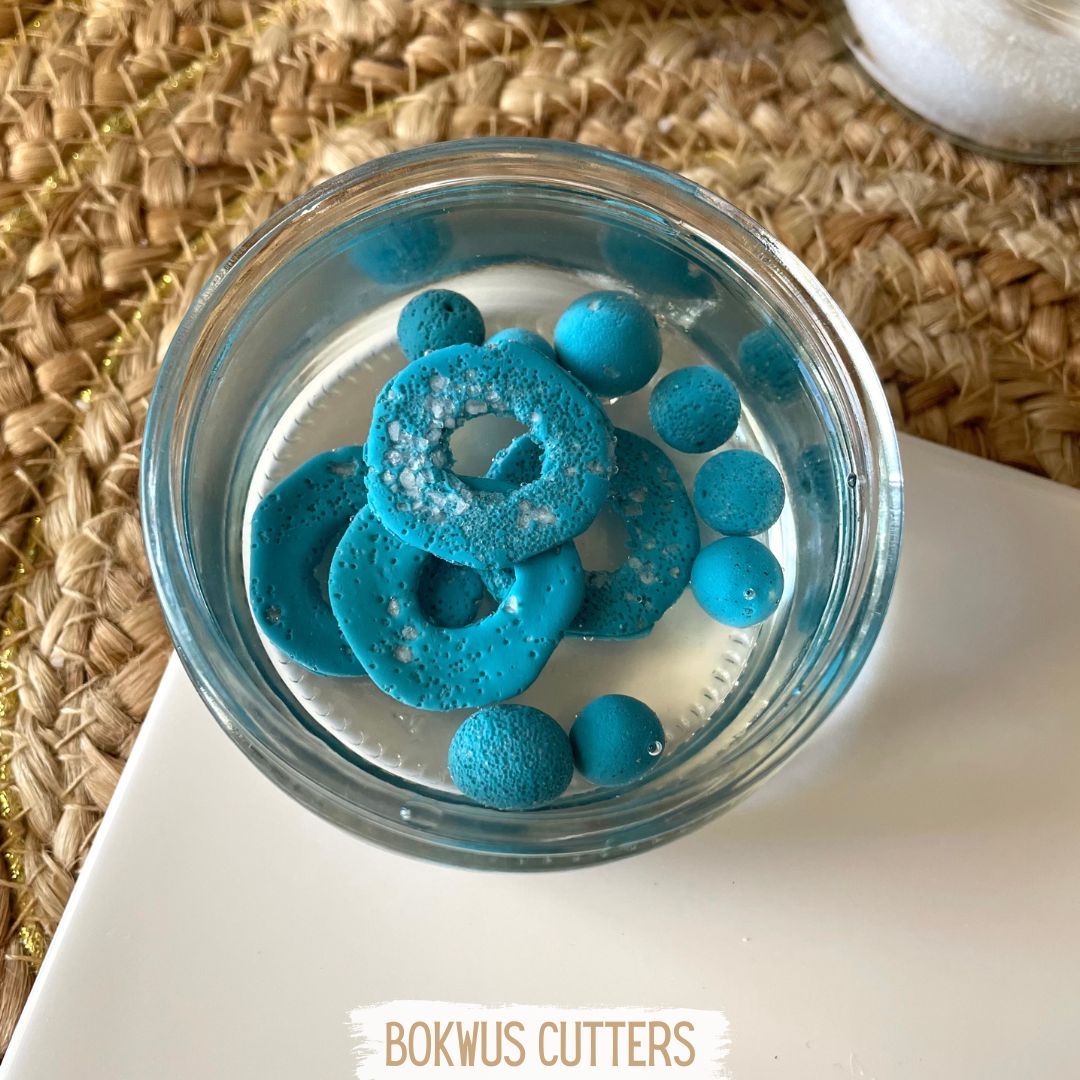 7º passo - mergulhar as peças em água até que todo o sal se dissolva. Podem utilizar uma escova macia para ajudar a retirar o sal.