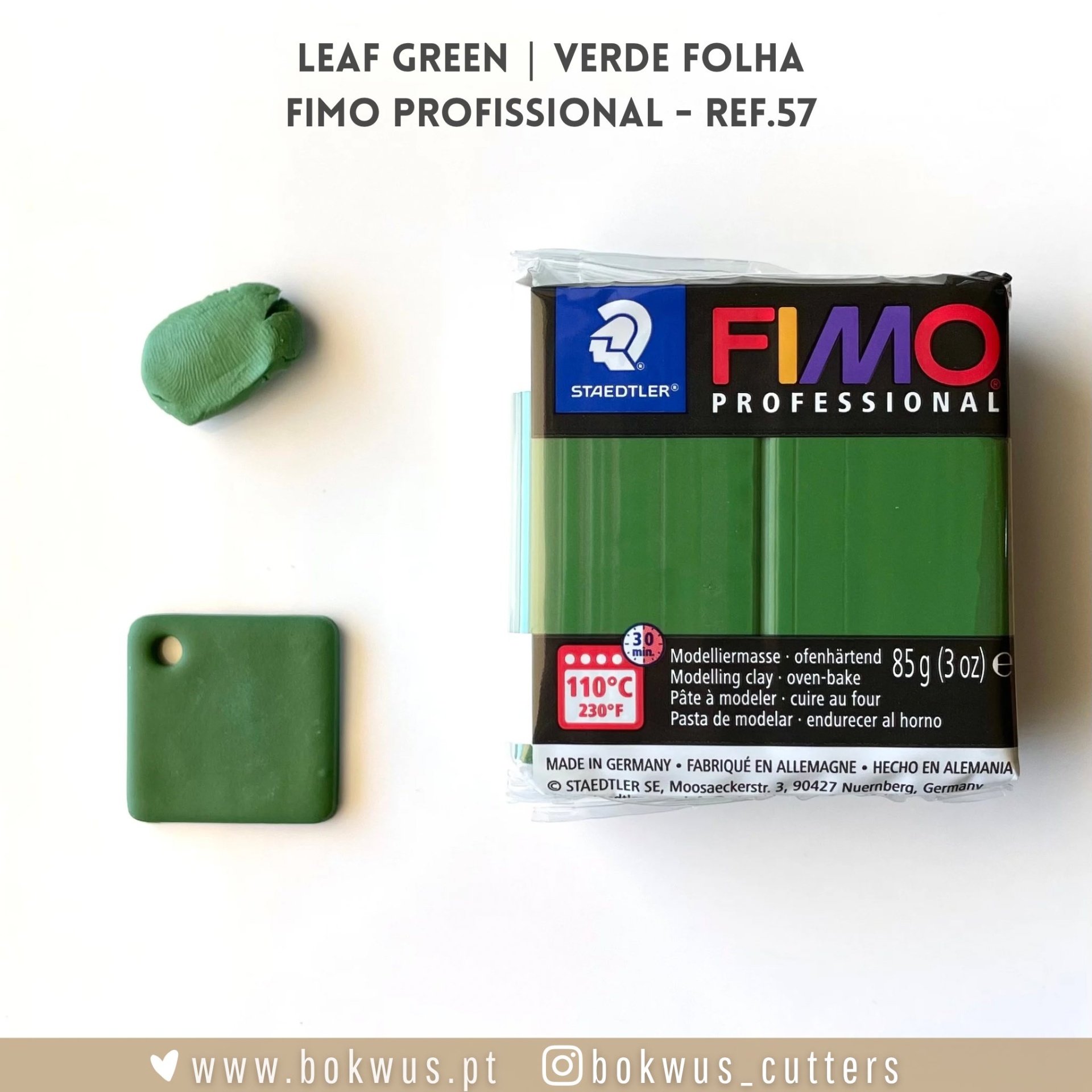 Verde folha da gama profissional da Fimo (Ref.57) : não se deixam intimidar pelo facto de ser da gama profissional. É verdade que esta gama tem uma consistência mais firme que a gama soft mas ainda assim não é díficil de trabalhar. É uma gama que podem usar muito a vosso favor quando pretendem fazer trabalhos mais delicados e minuciosos.