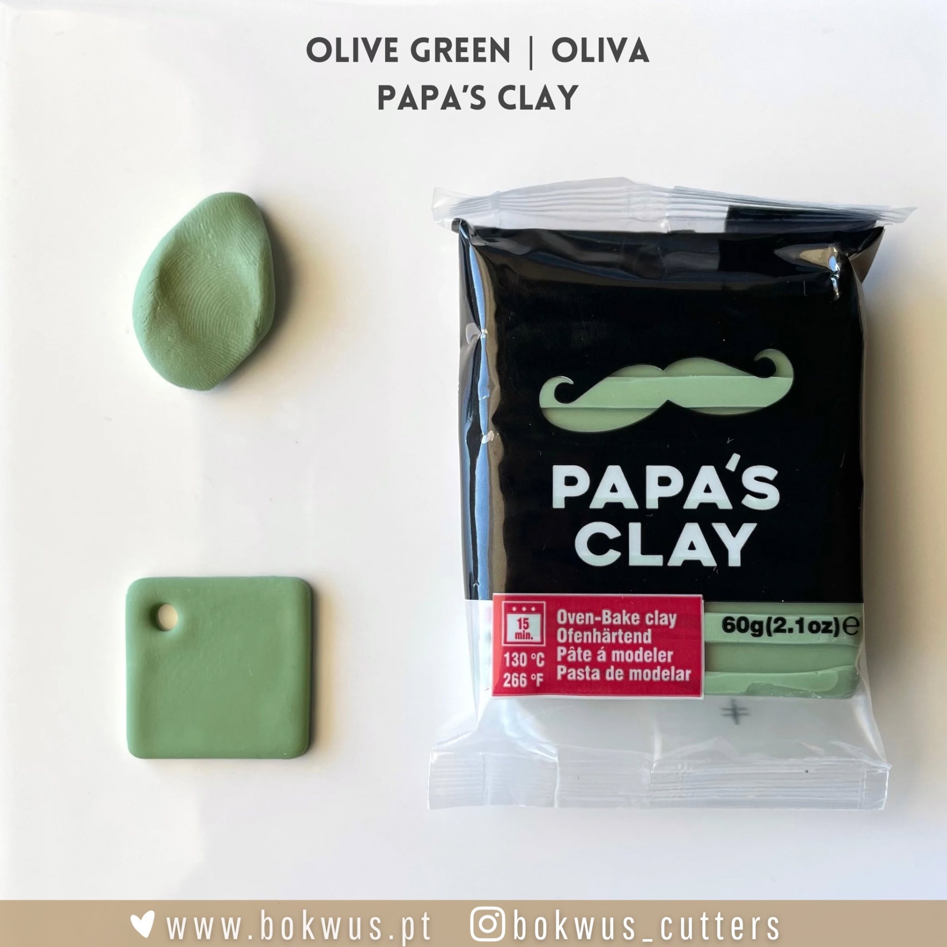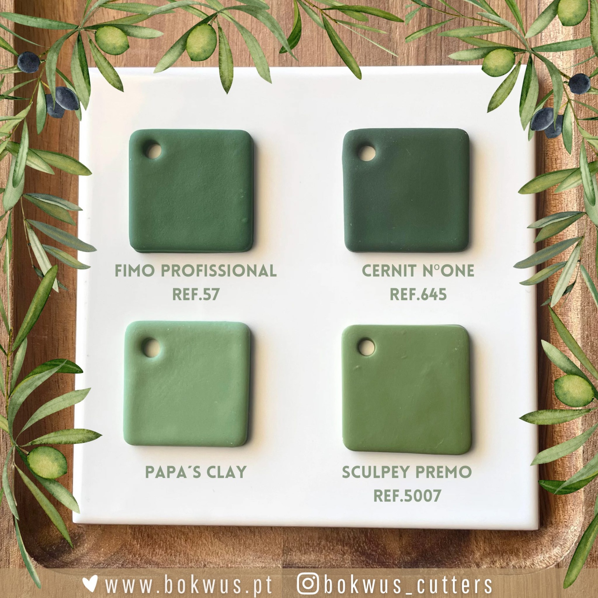 Oliva da Papa's Clay: é o tom de verde mais claro dos quatro. Esta cor ganha alguma saturação com a cozedura, não ficando tão "desmaiada" como a cor em crú.
