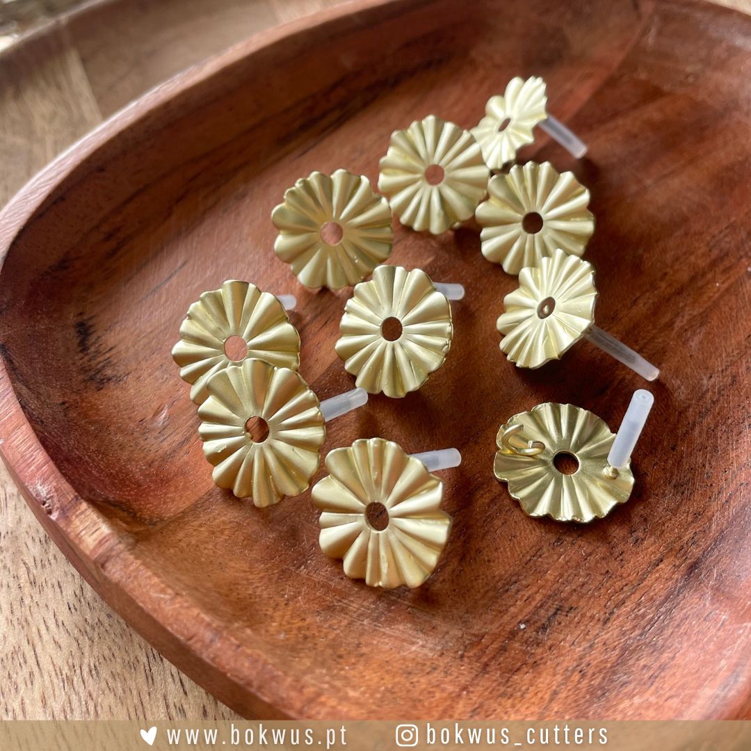 💛 Ideal para aplicar elementos em cerâmica plástica, resina ou outros materiais leves 🔩 Inclui um pequeno aro na parte de trás para colocar o pendente. 🔩 Não inclui fecho/trava/borboleta 📐 Tamanho: aprox. 17,5 mm de comprimento × 18,5 mm de largura 🎨 Cor: Dourado claro mate 📦 Pack de 10 unidades (5 pares)