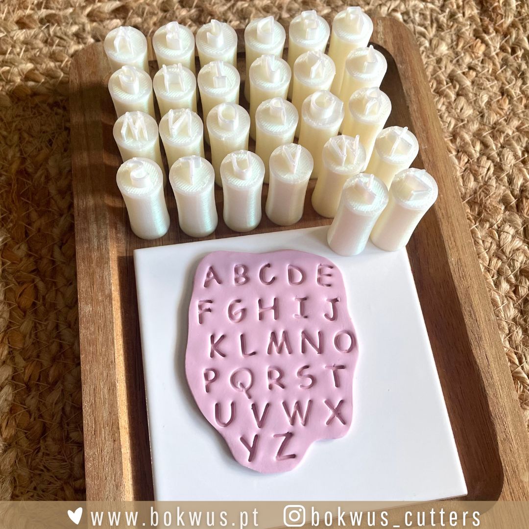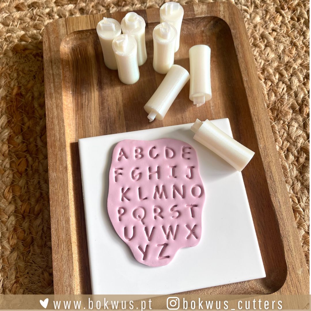 Carimbos de letras maiúsculas ideais para personalizar as tuas peças em cerâmica plástica, pasta de modelar ou outros materiais artesanais.