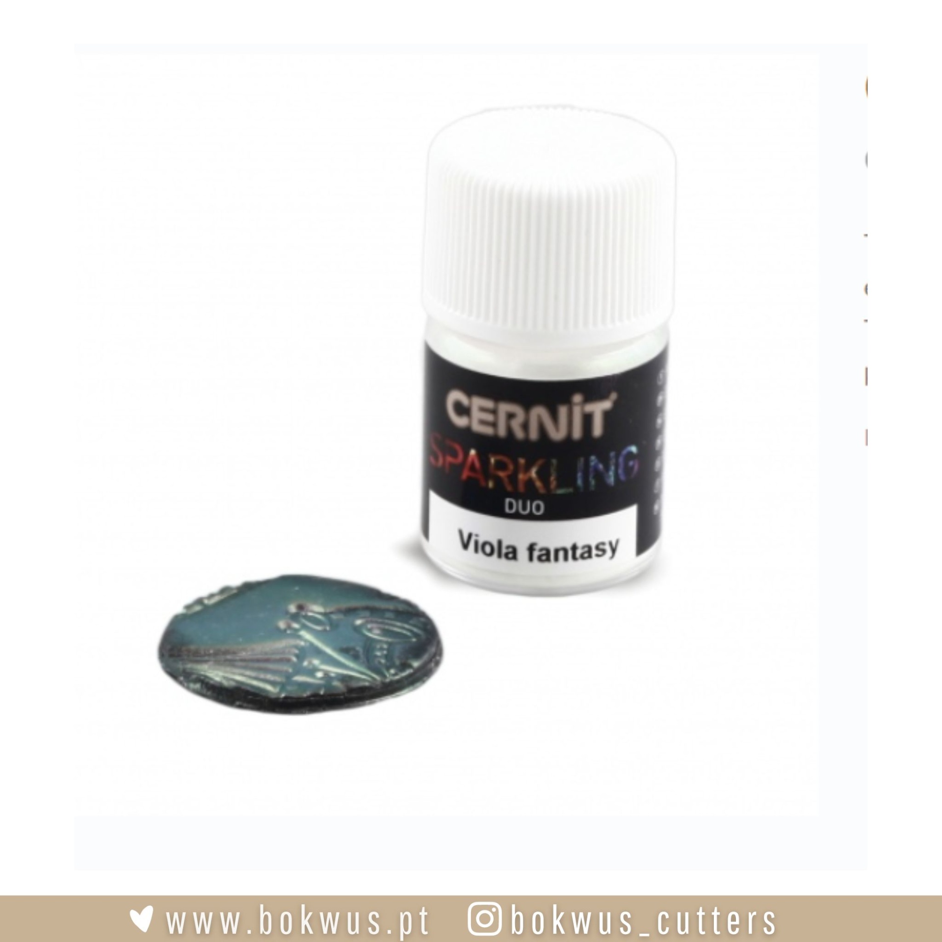 • Frasco pequeno de Cernit Sparkling Duo Viola fantasy com pedaço de massa polimérica