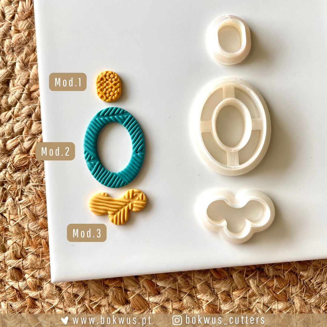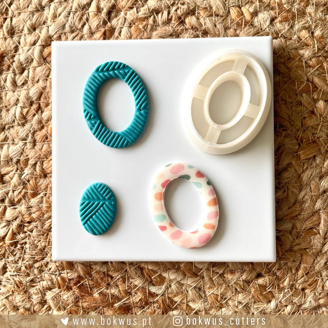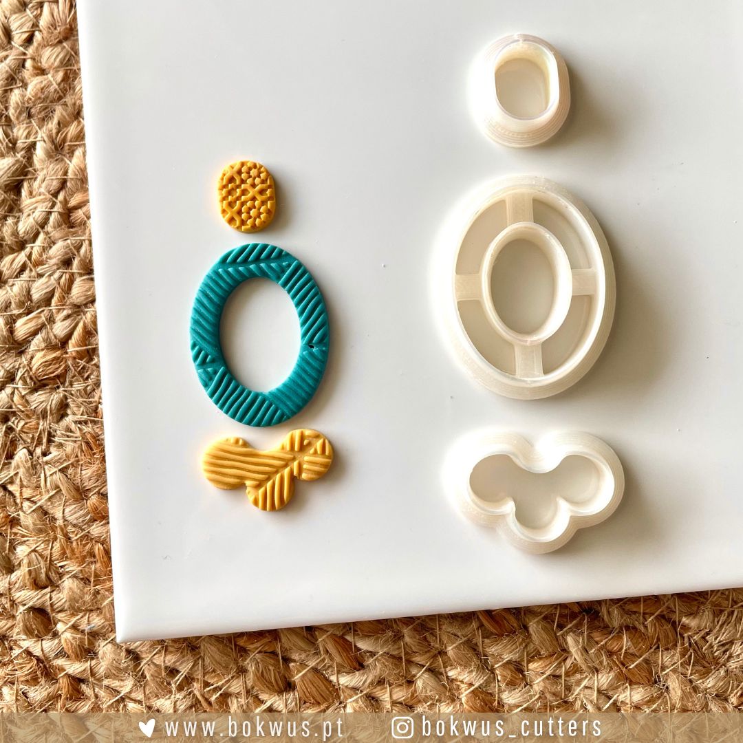 Este conjunto inclui três cortadores com formas versáteis, ideais para criar combinações únicas de brincos em cerâmica plástica.