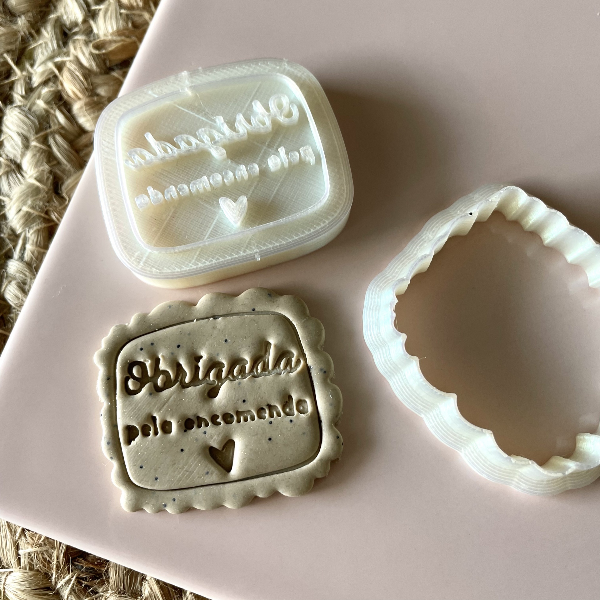 Conjunto cortador + carimbo - " Obrigada pela encomenda" - BC837