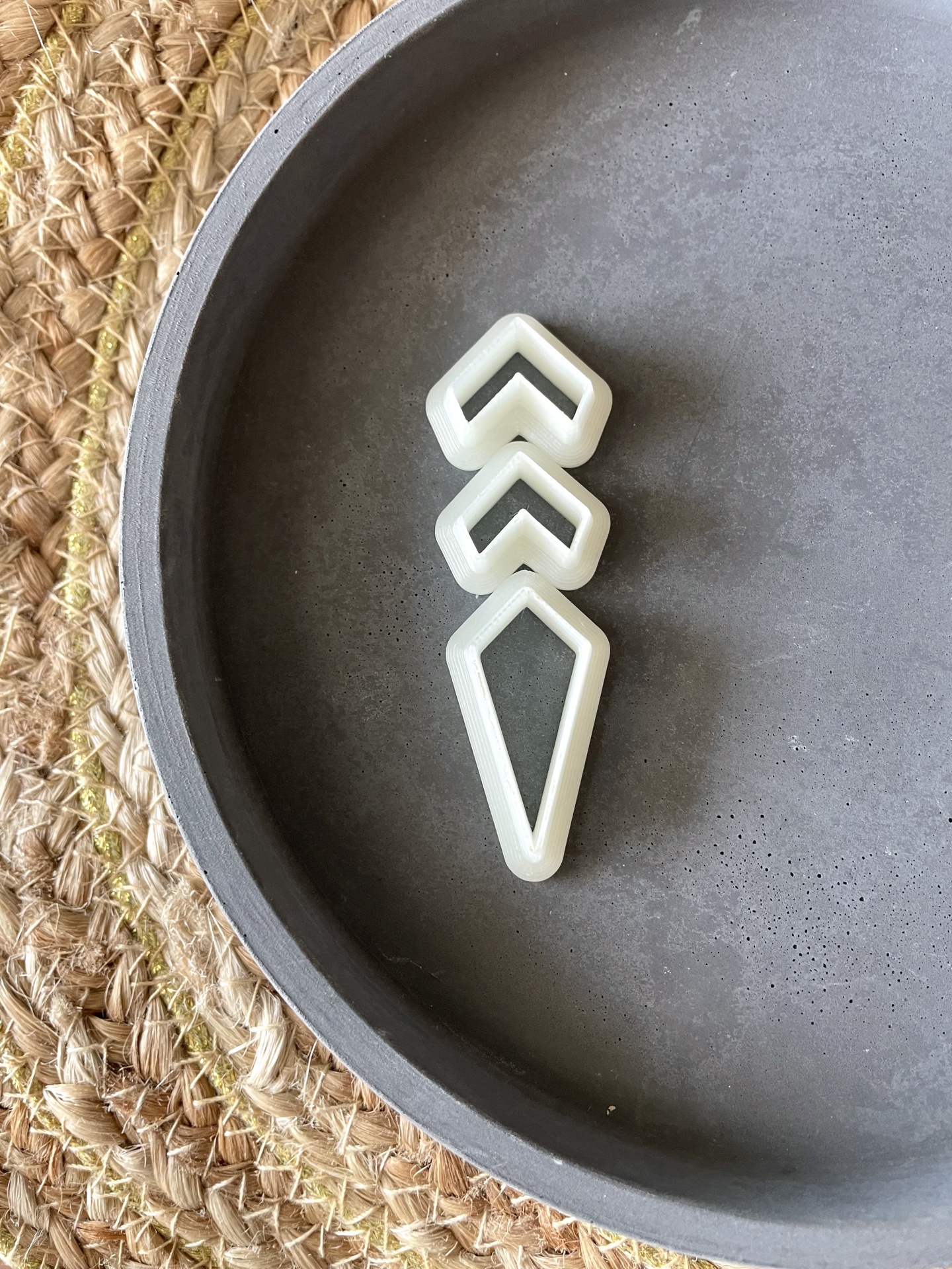 • Cortadores de biscoito brancos em formas geométricas numa prato cinzento