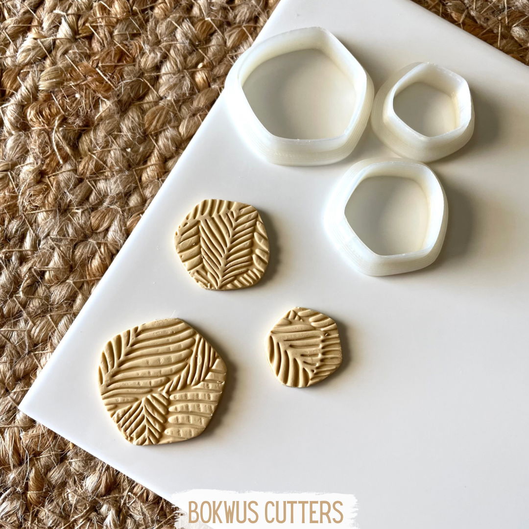 • Cortadores hexagonais de plástico e peças de massinha com texturas de folhas