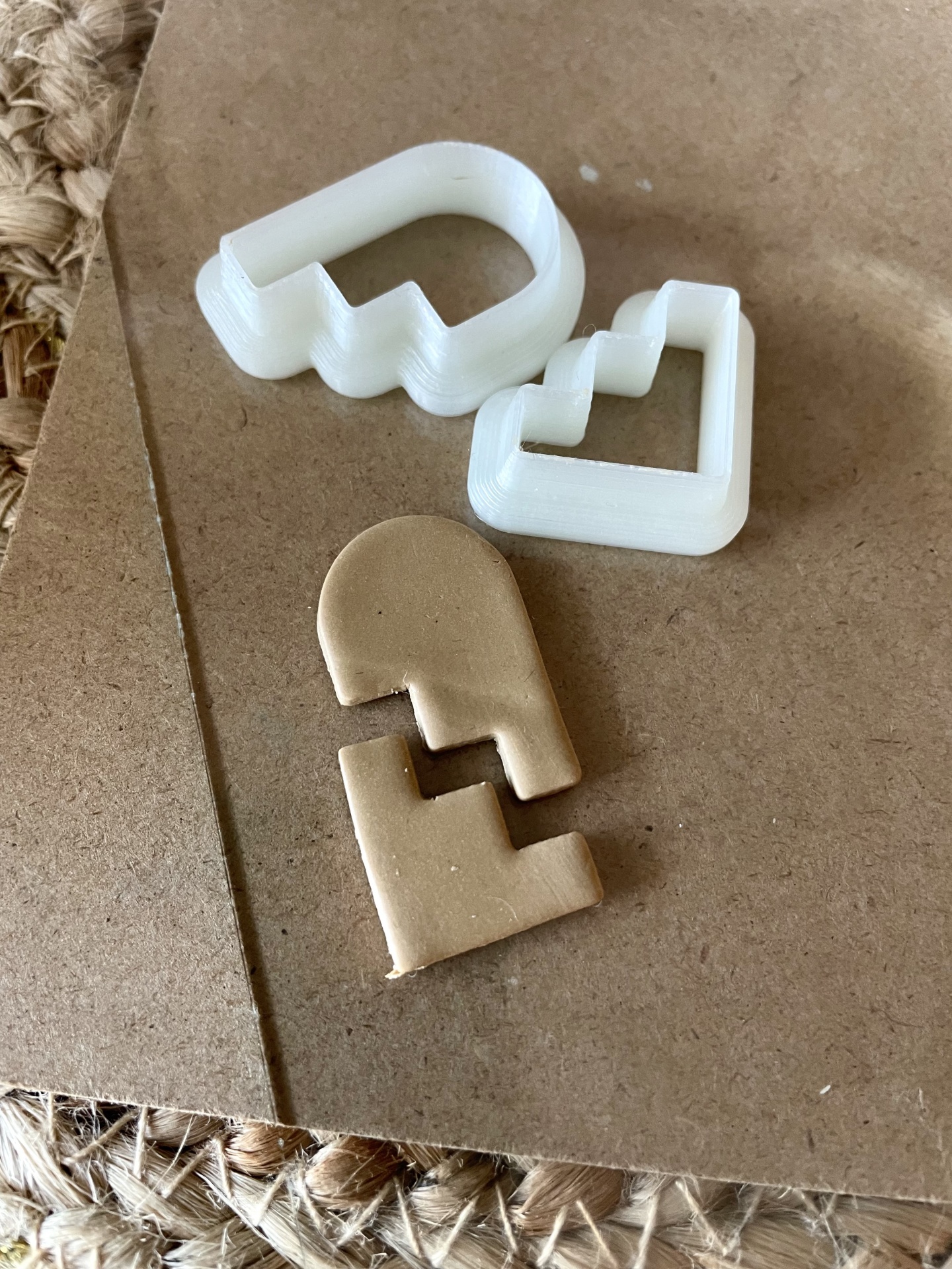 • Cortadores de massa brancos e massa moldada bege sobre cartão marrom