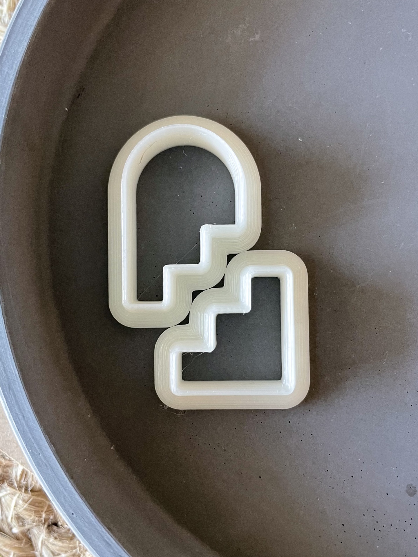 Dois cortadores de bolachas em forma de gelado brancos sobre um prato cinzento