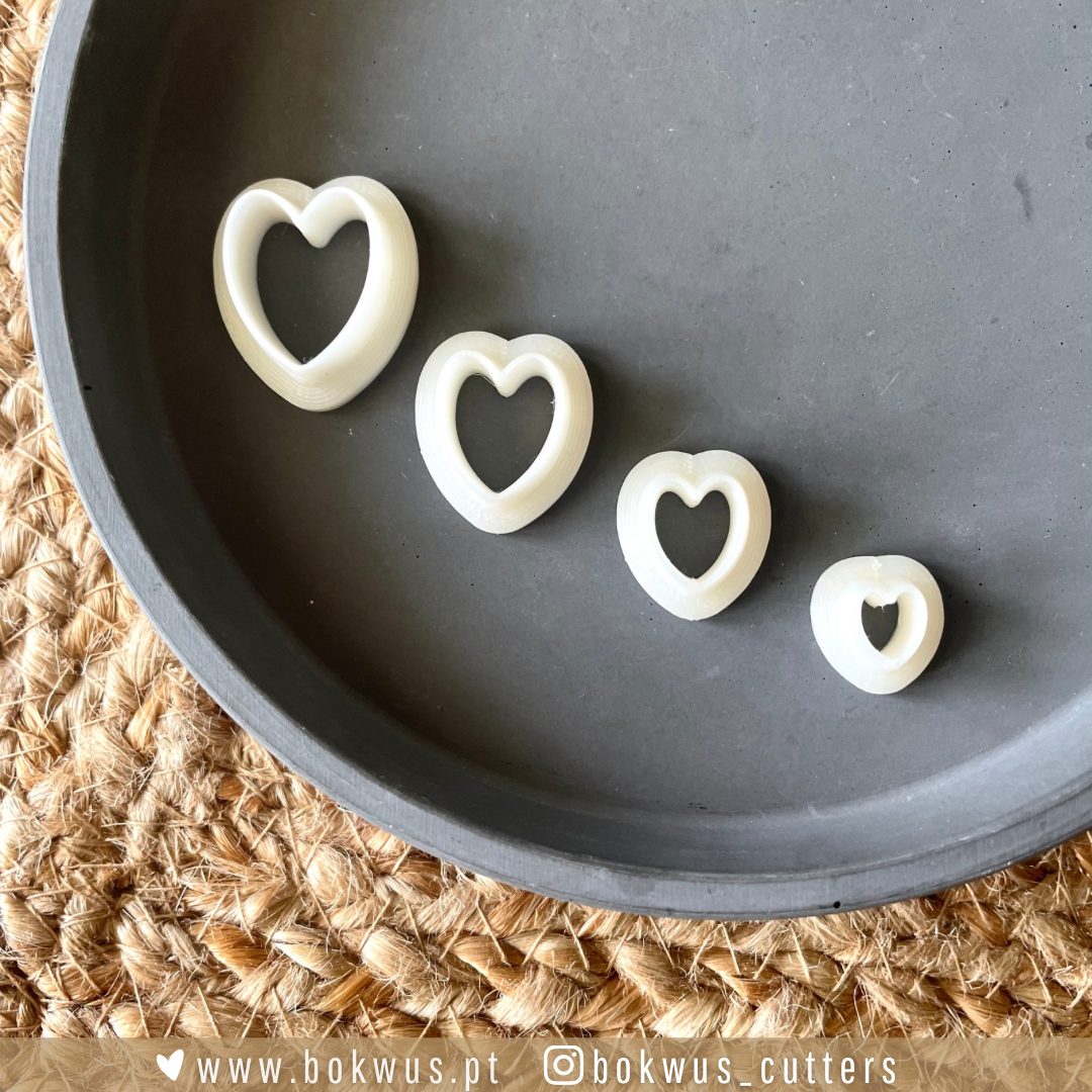 • Conjunto de quatro cortadores em forma de coração branco em bandeja cinza