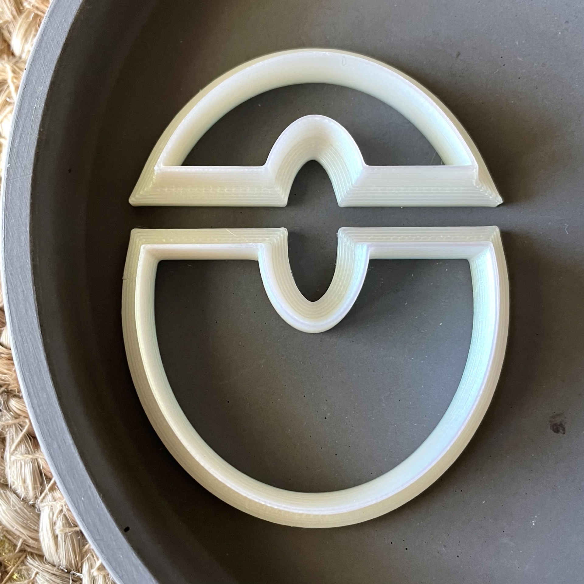 Dois cortadores de biscoito brancos ovais sobre prato cinza