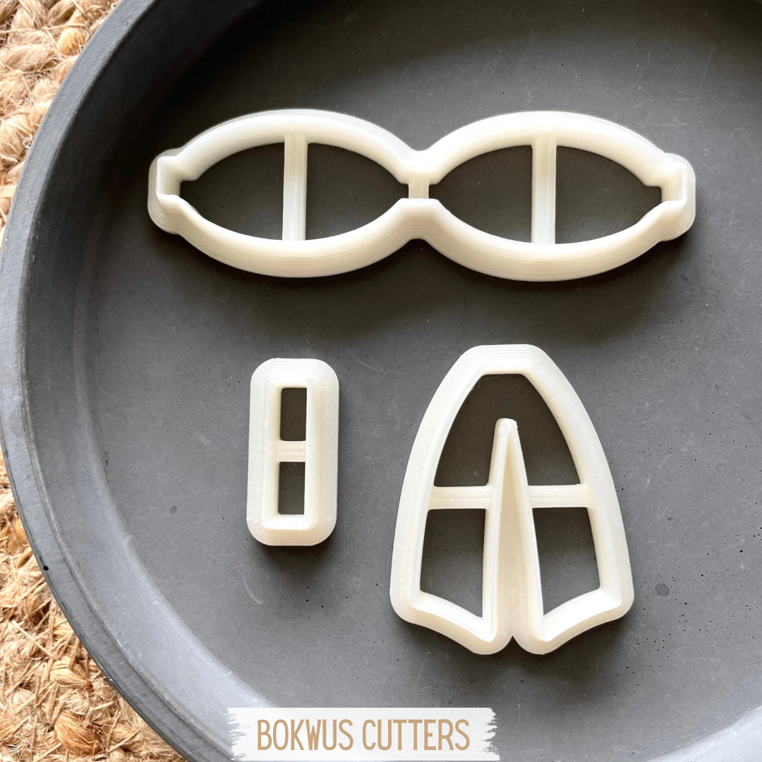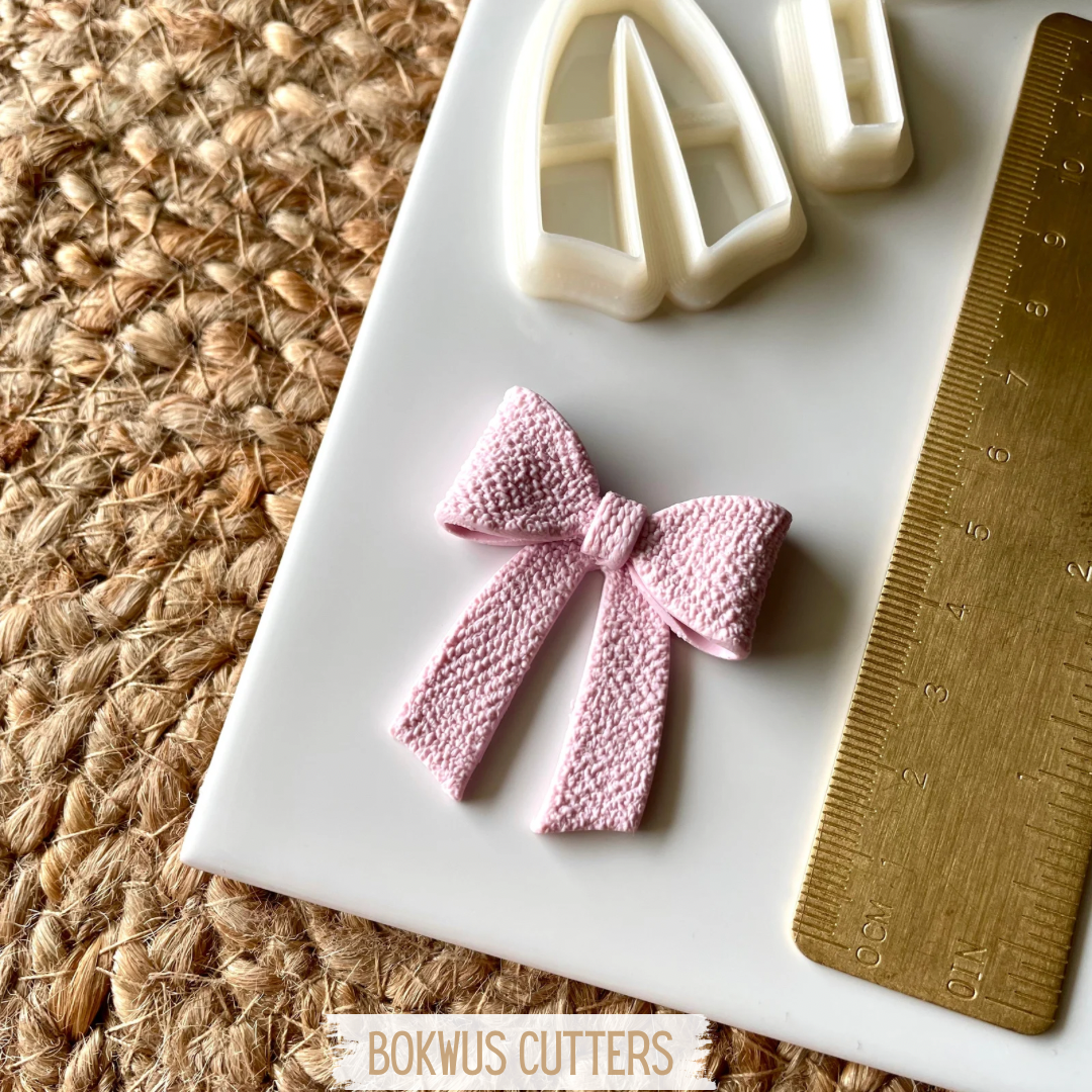 Conjunto de cortadores especialmente pensados para a montagem de um laço com 4 a 4,5cm de altura e aproximadamente 3,8cm de largura.