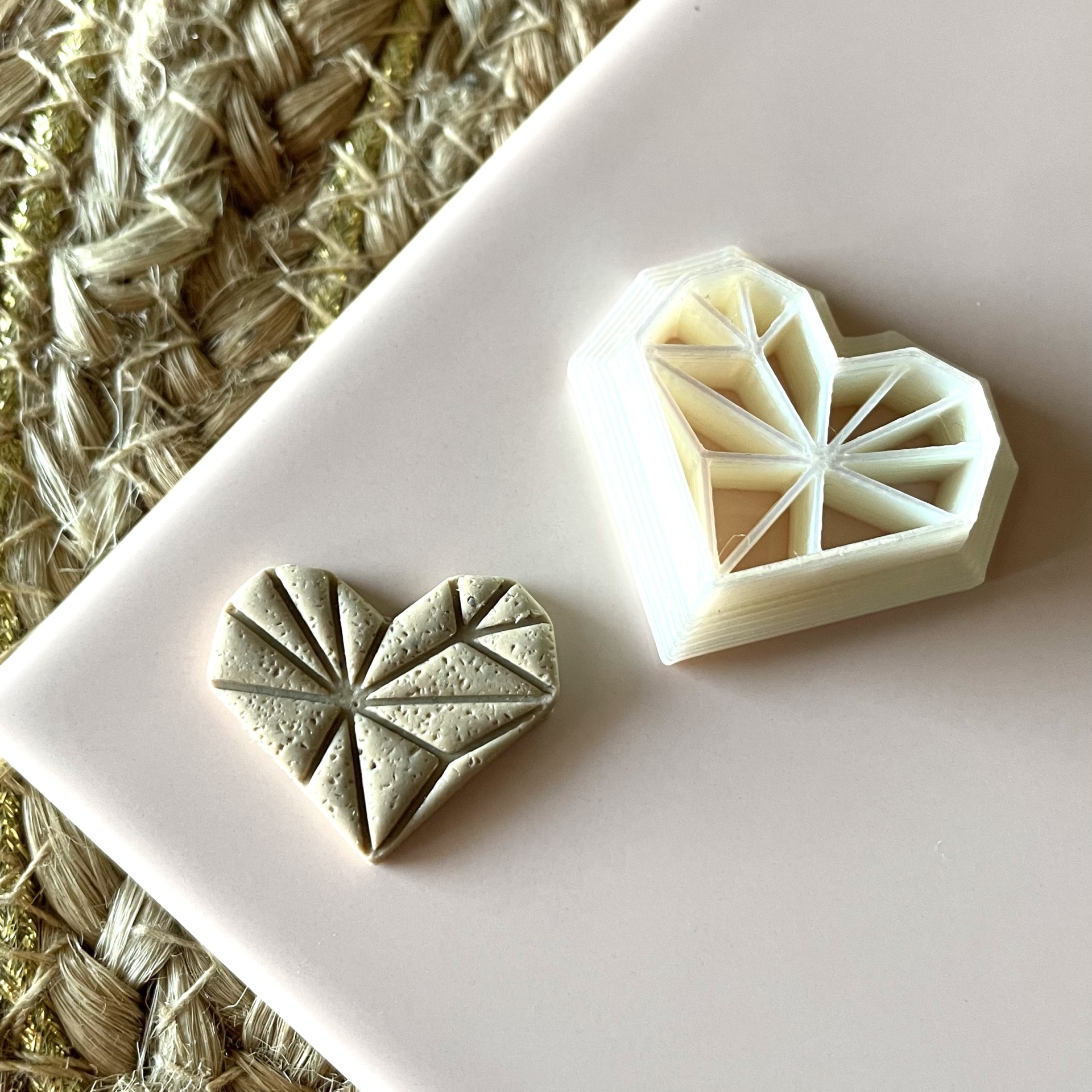 • Objeto decorativo em forma de coração geométrico branco sobre superfície cinzenta