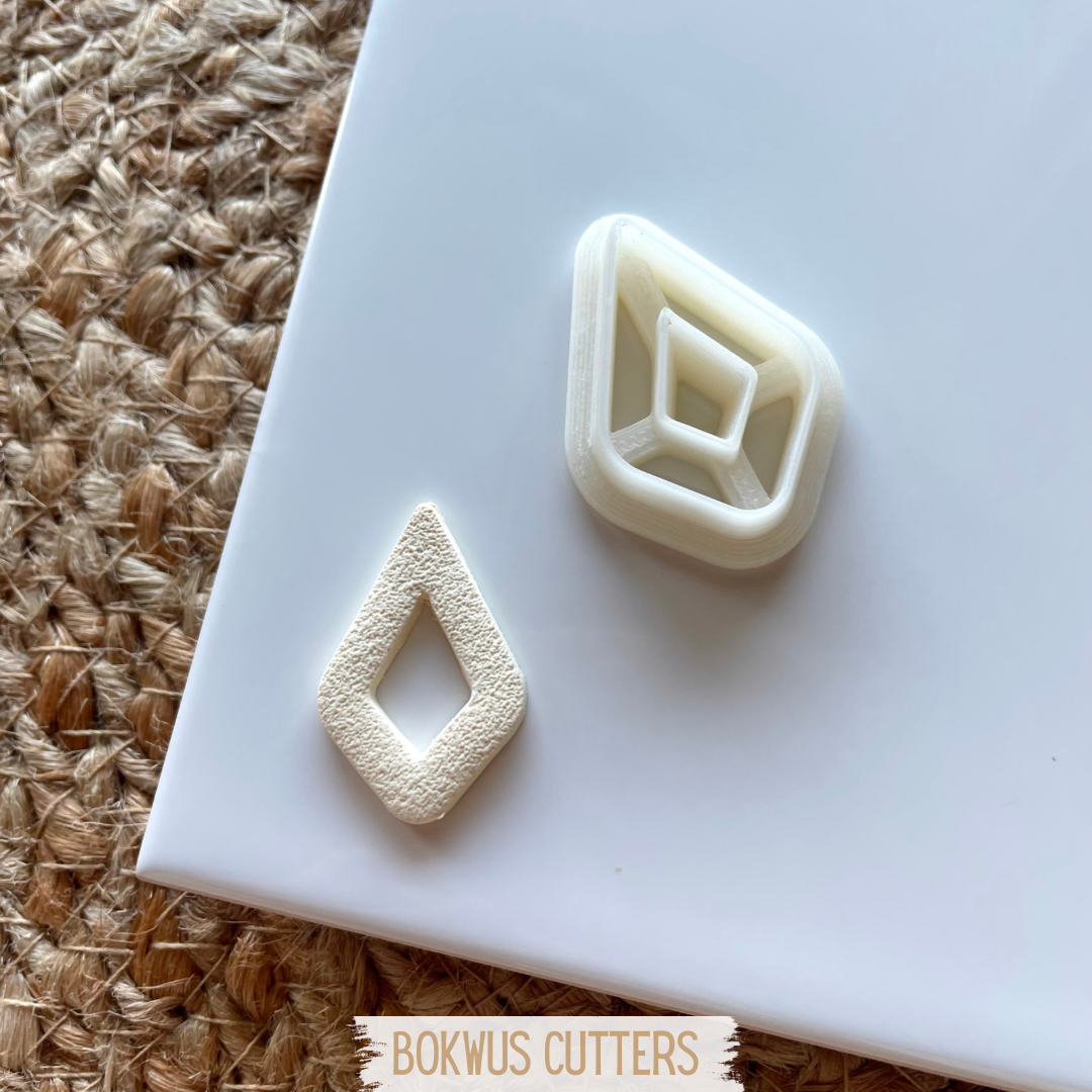 • Cortadores losango brancos com textura sobre superfície branca e fundo de palha