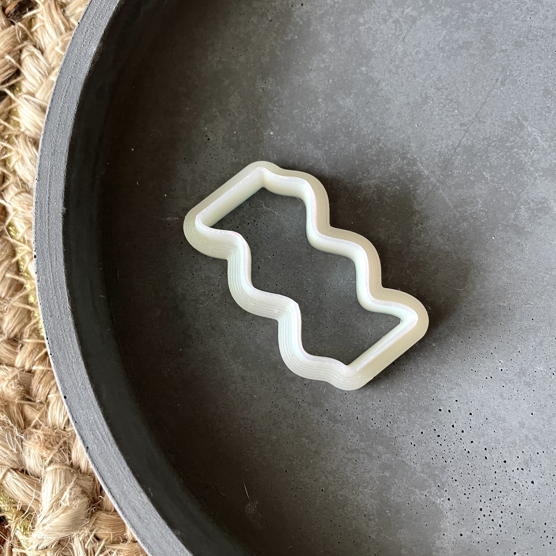 • Cortador branco ondulado sobre superfície cinzenta com tapete de fibra natural ao lado