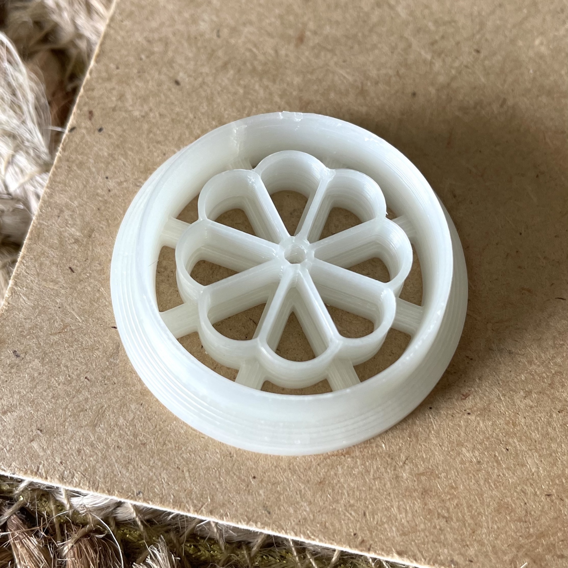 • Carimbo branco de plástico com design floral e impressão em argila sobre cartão e tecido