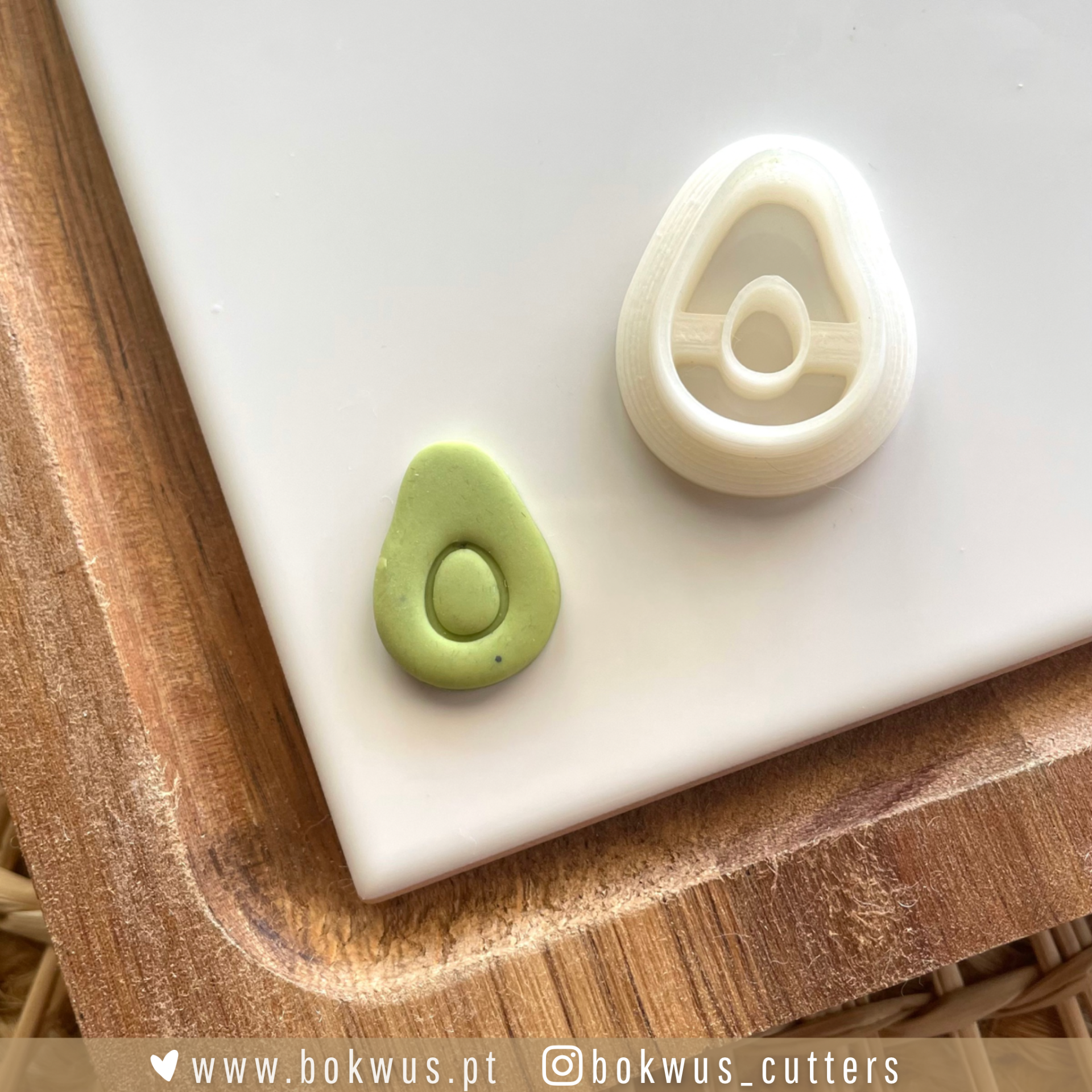 • Cortador de biscoitos em formato de abacate com massa verde moldada