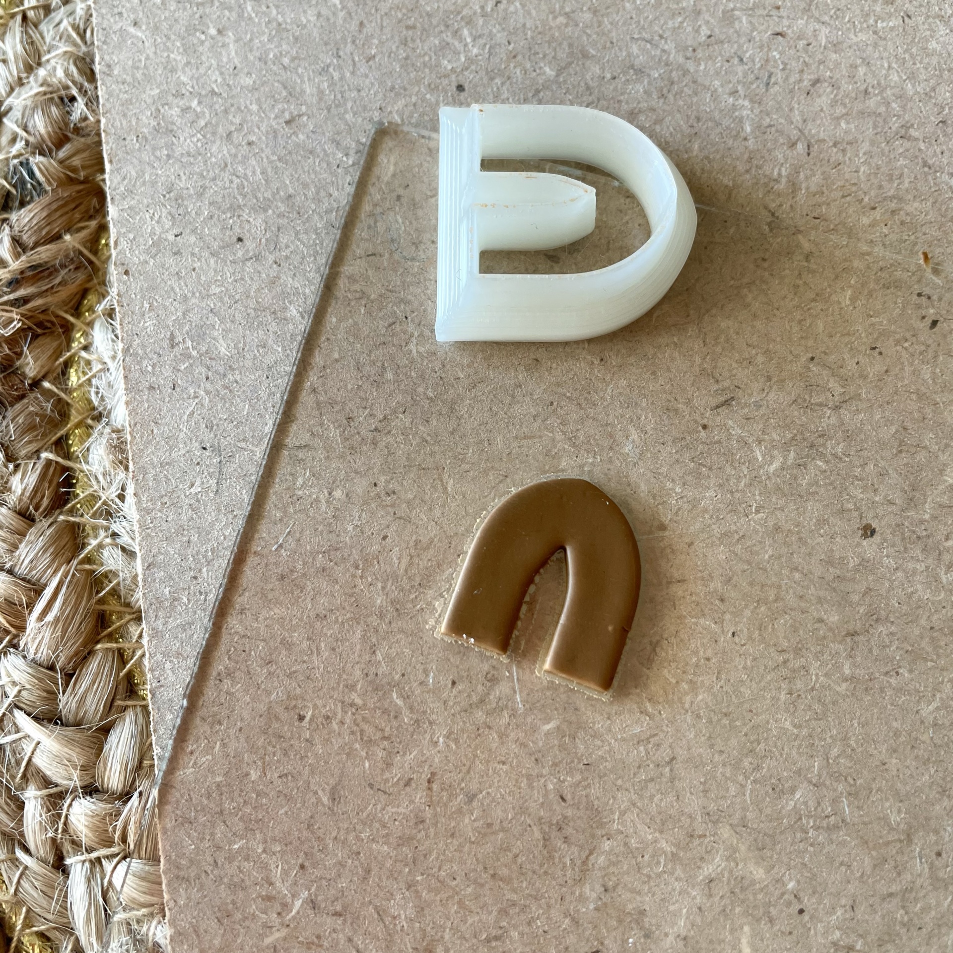 • Dois moldes de silicone em formato de arcos, um branco e outro castanho, sobre superfície dura