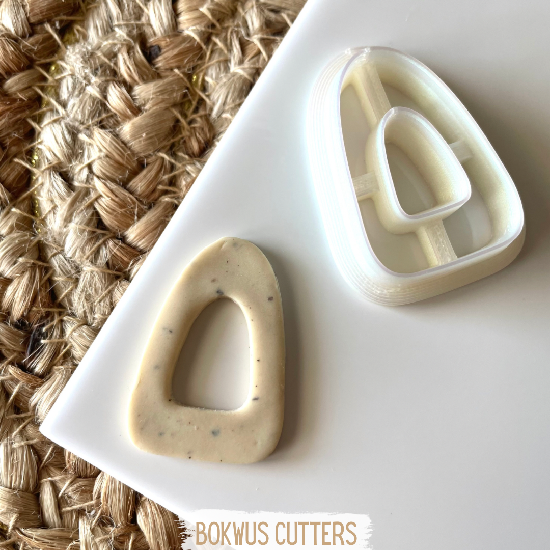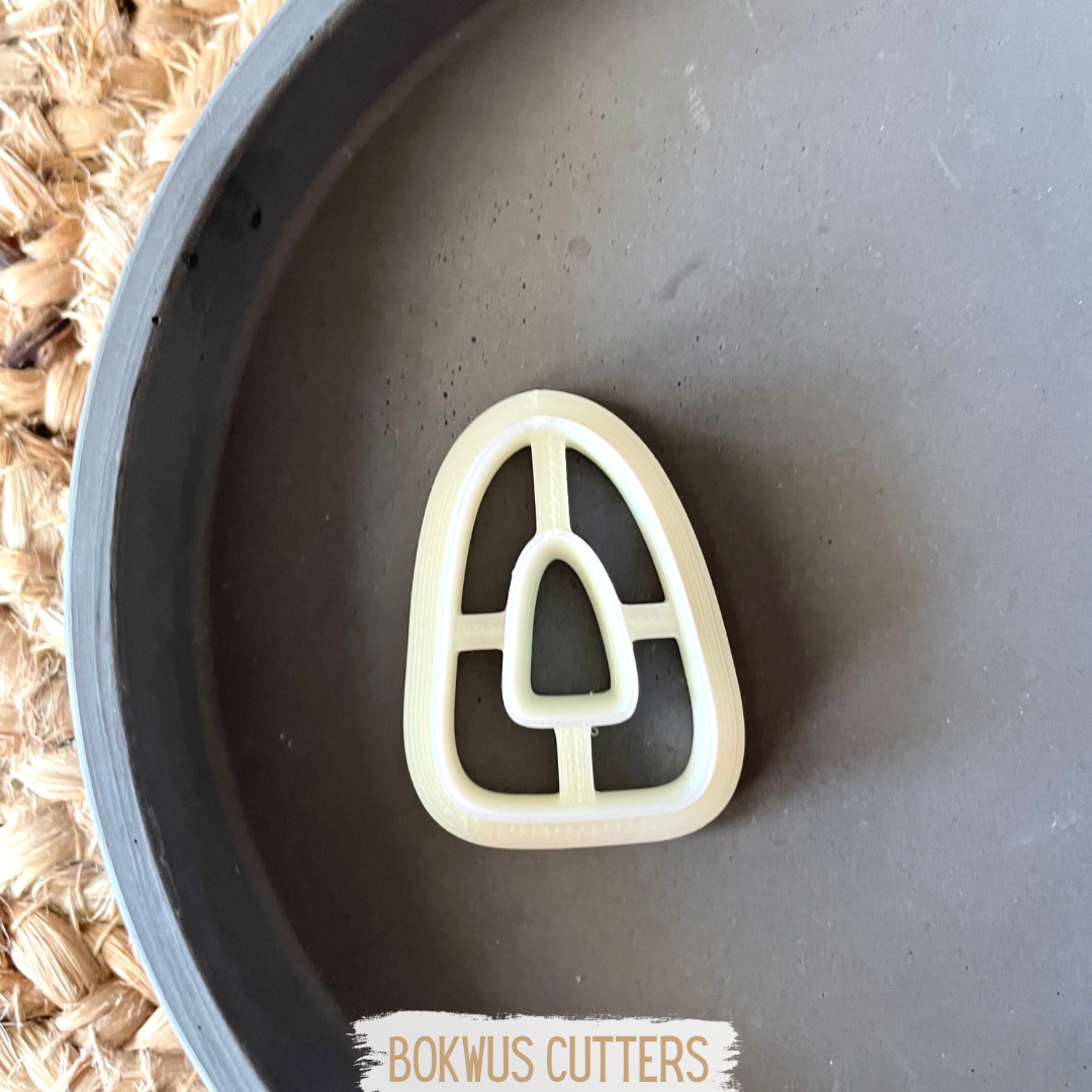 • Forma cremosa para cortar biscoitos com design geométrico sobre bandeja cinza