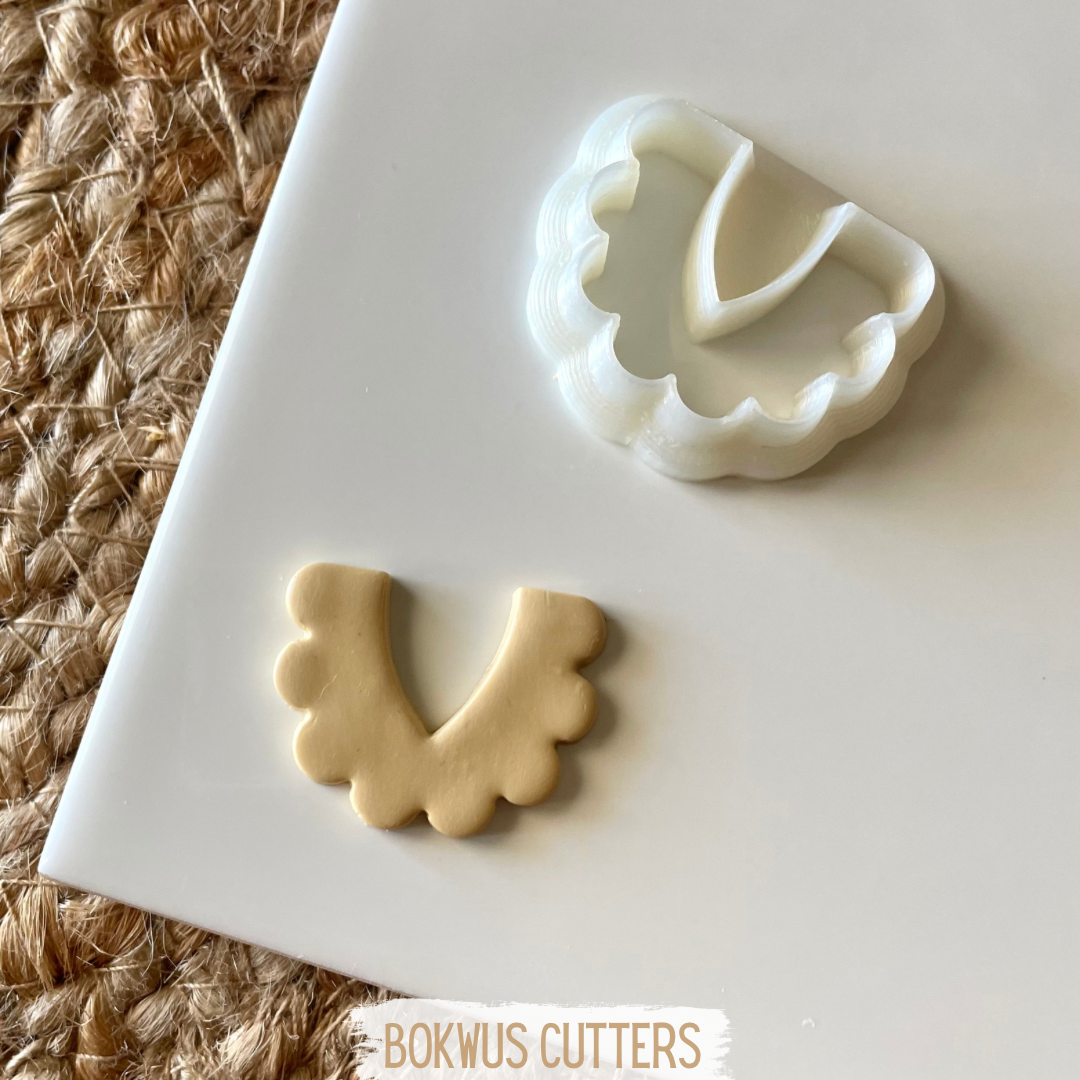 • Cortador de biscoitos branco com bordas onduladas e forma triangular interior