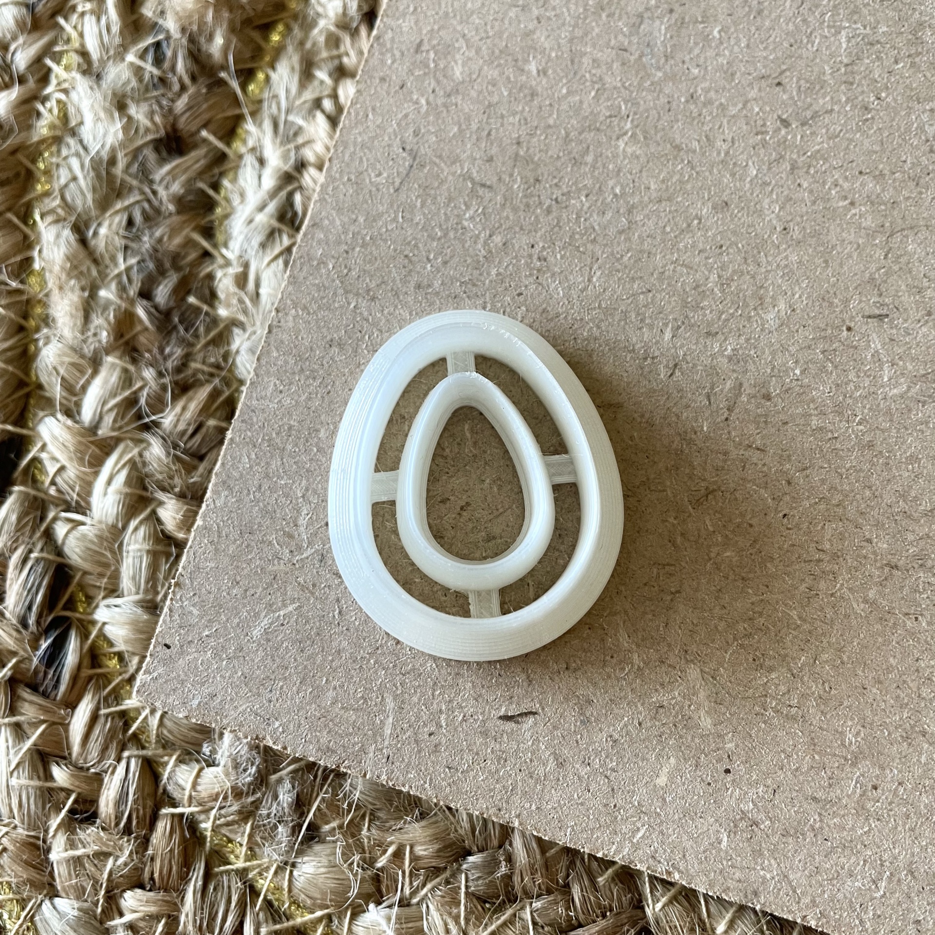 • Botão oval branco translúcido com design de ovo em cartão castanho