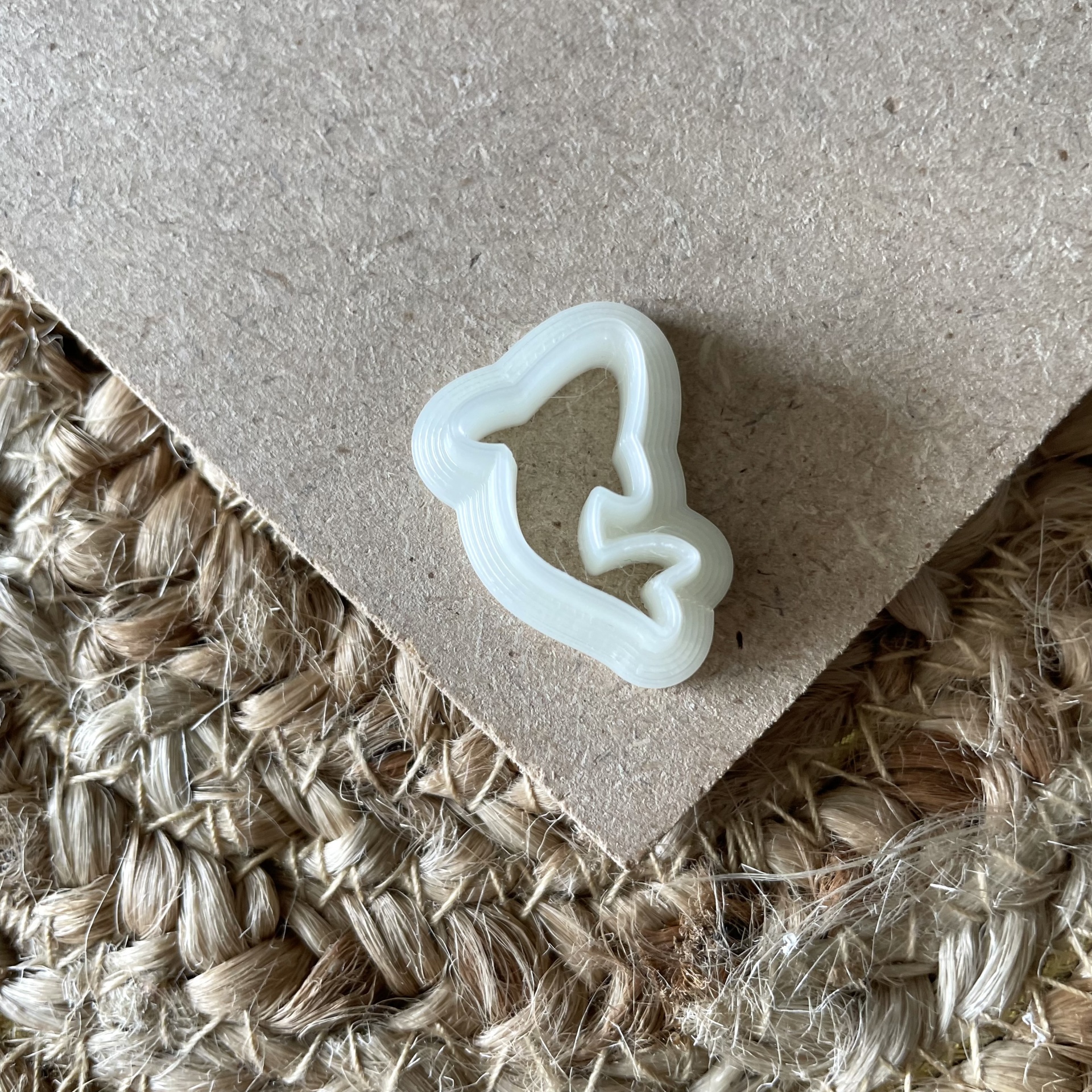 • Corta-massa branco em forma de sino sobre tecido rústico e cartão seco