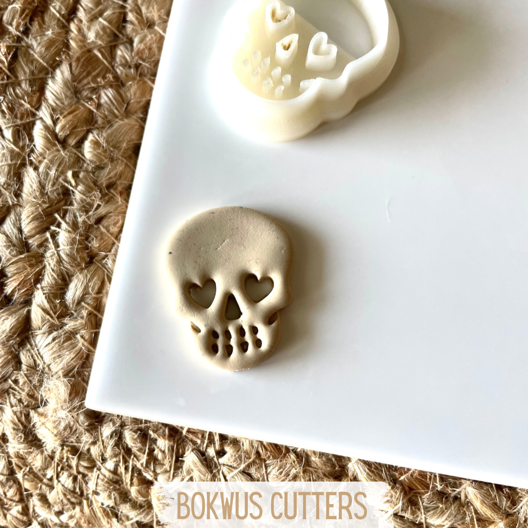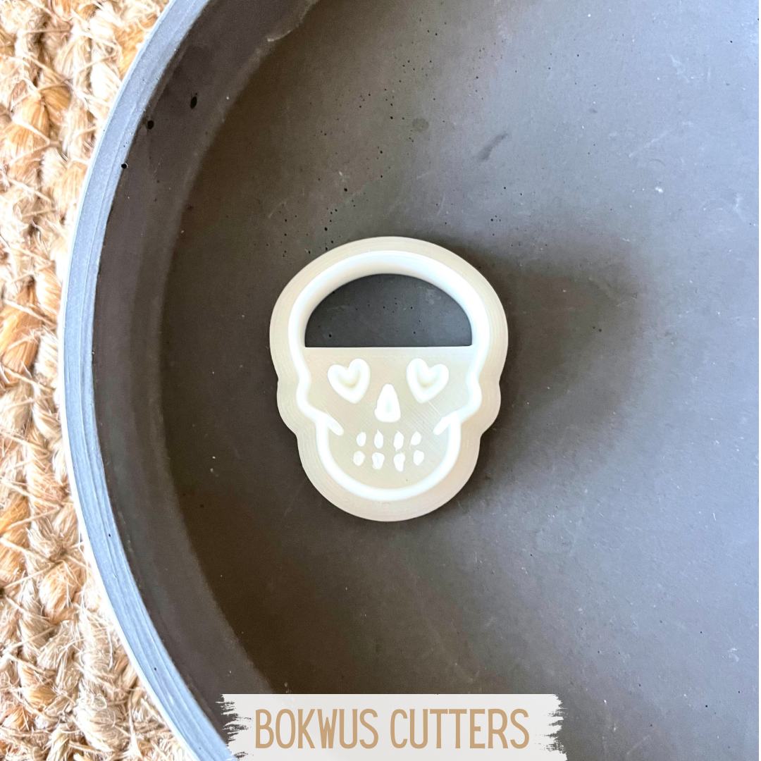 • Cortador de massa em forma de crânio com olhos em coração