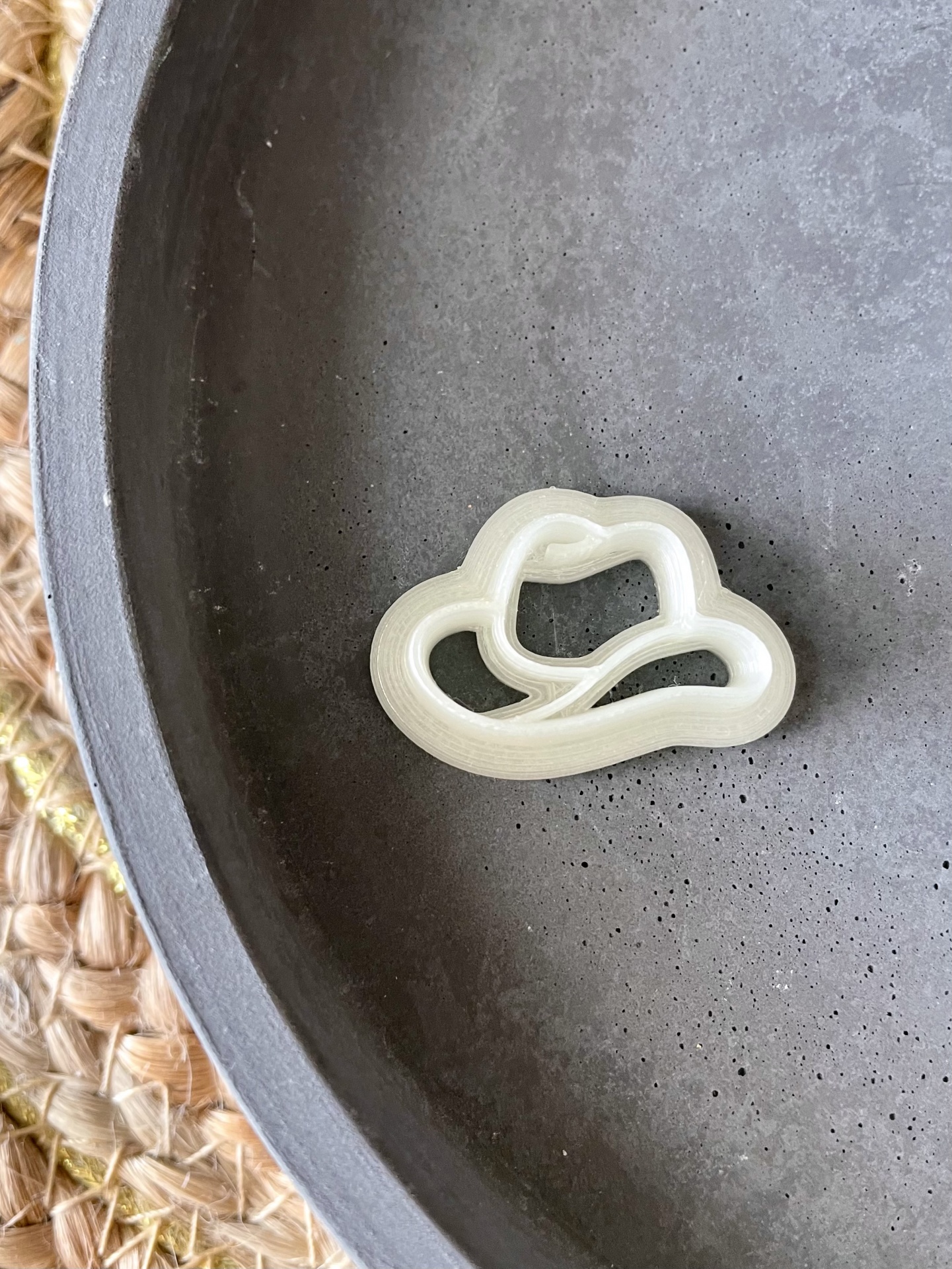 • Forma de massa branca em forma de chapéu de cowboy numa travessa cinza escura texturizada