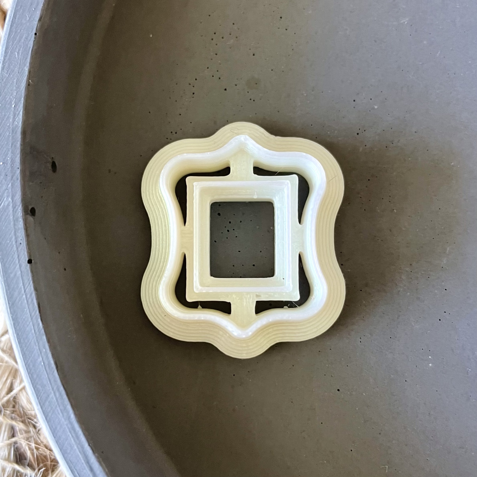 • Moldes para biscoitos em plástico branco com formato de moldura quadrada ondulada
