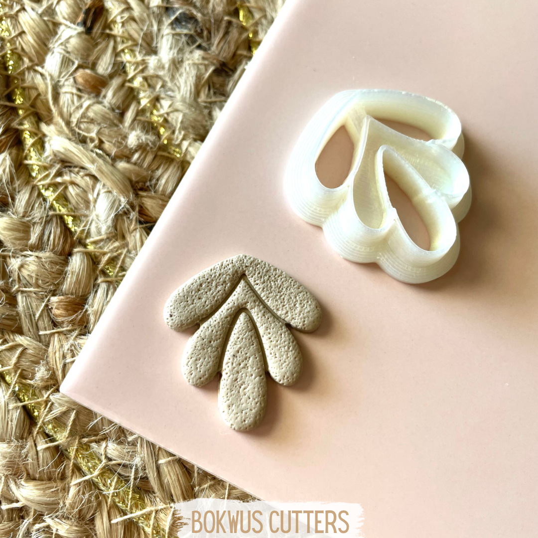 • cortador branco em forma de folhas com argila texturizada sobre superfície rosa e tapete de fibras