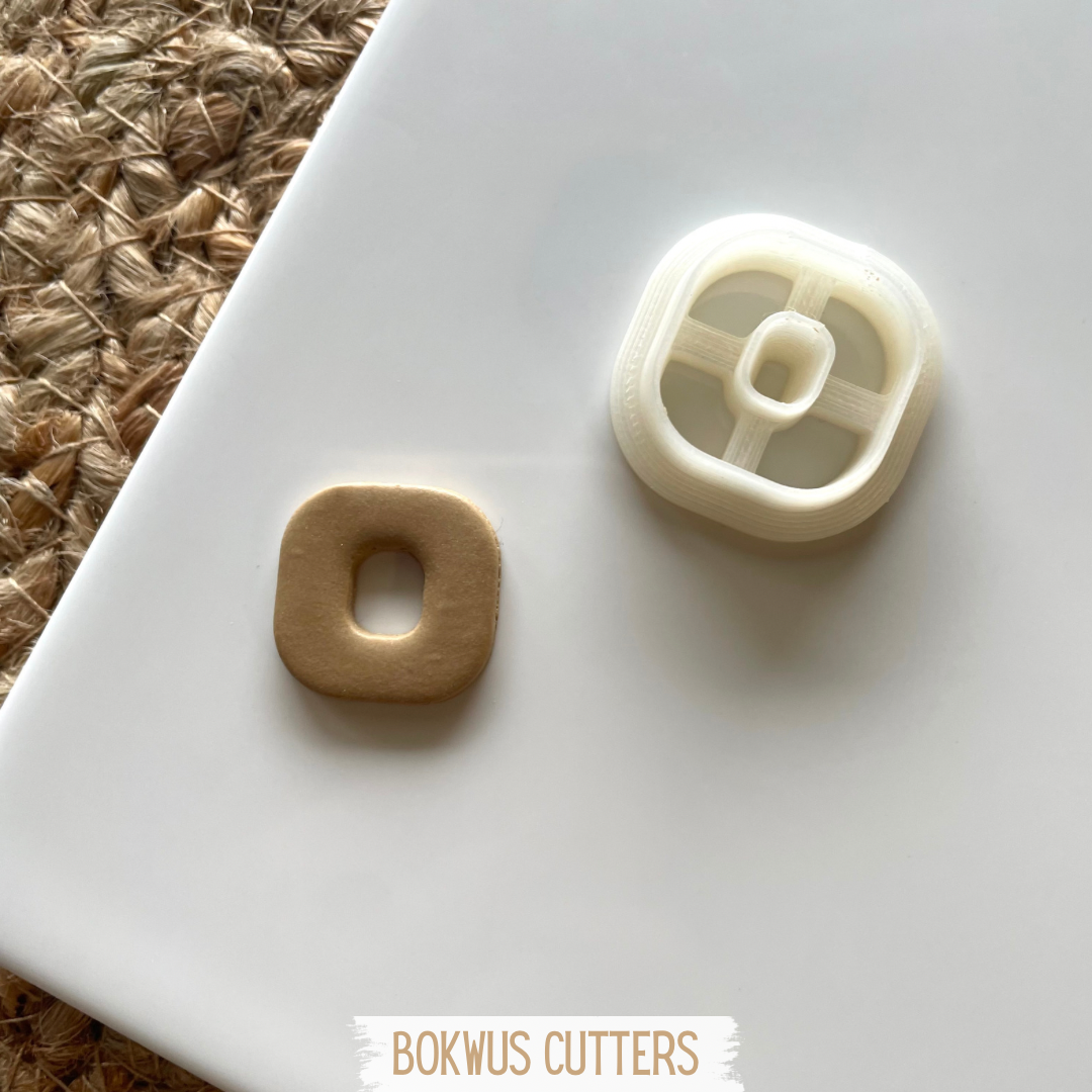 • Conjunto de cortantes para bolachas oval com buraco quadrado em plástico e metal