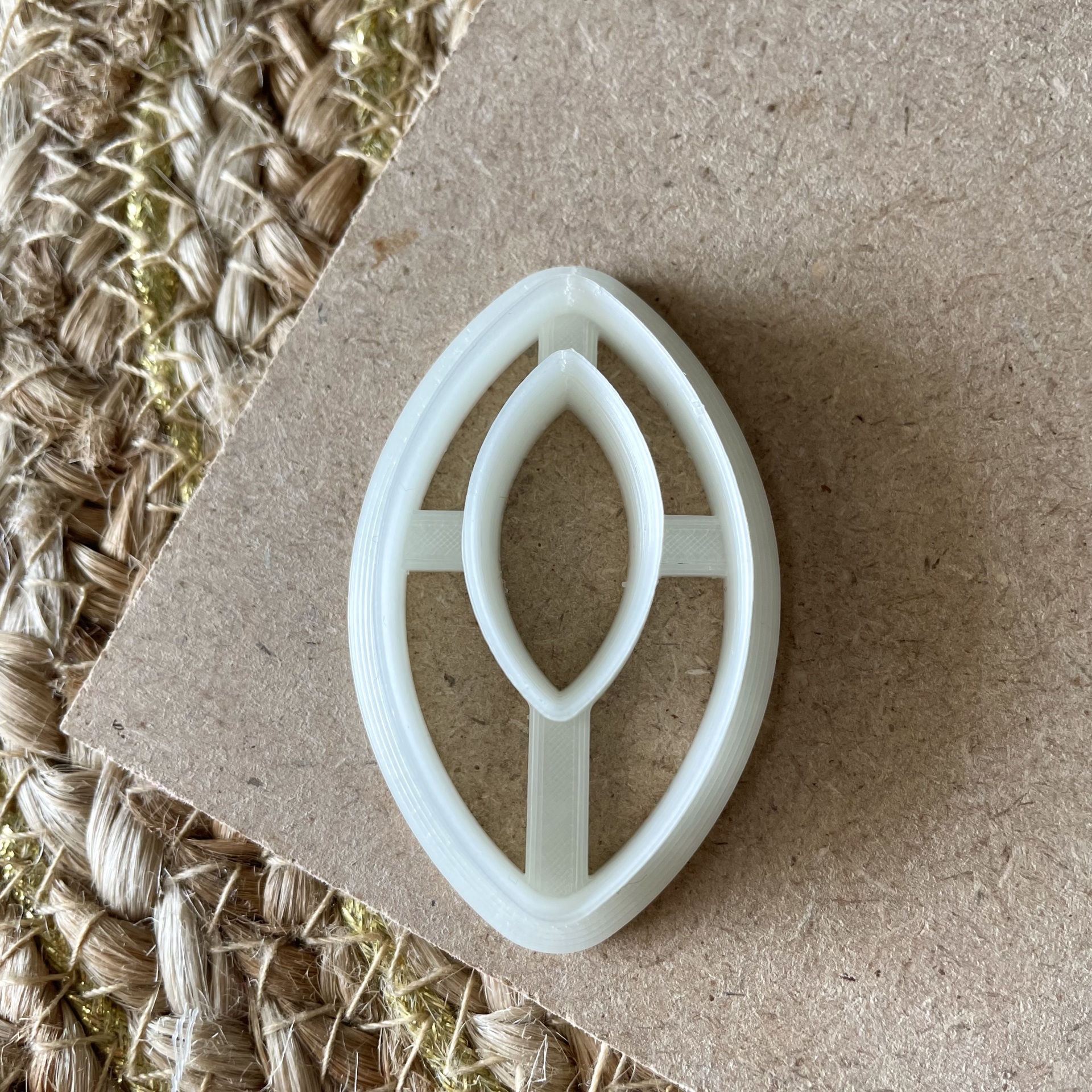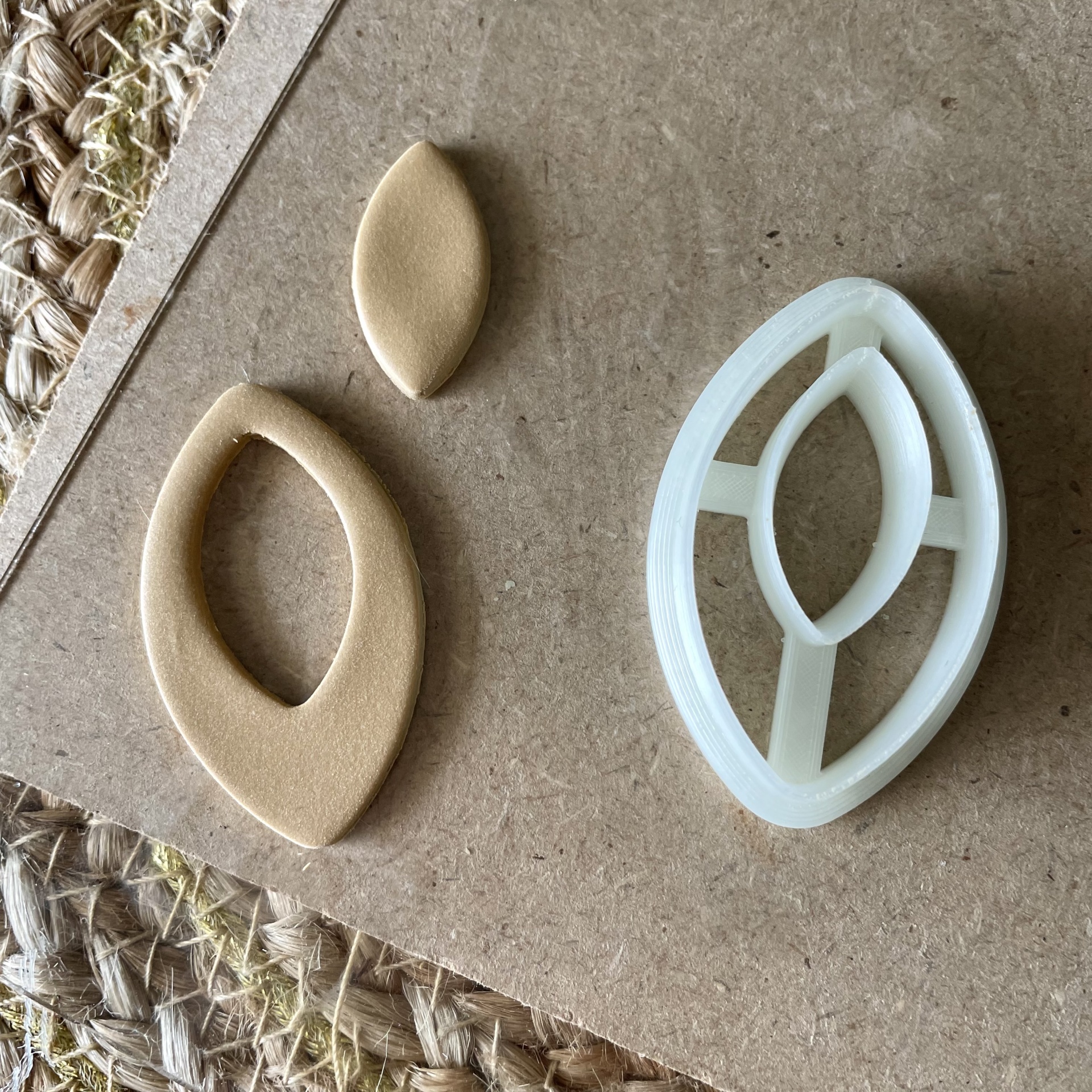 • Três moldes ovais para cortar materiais sobre superfície de cartão e tapete de fibras