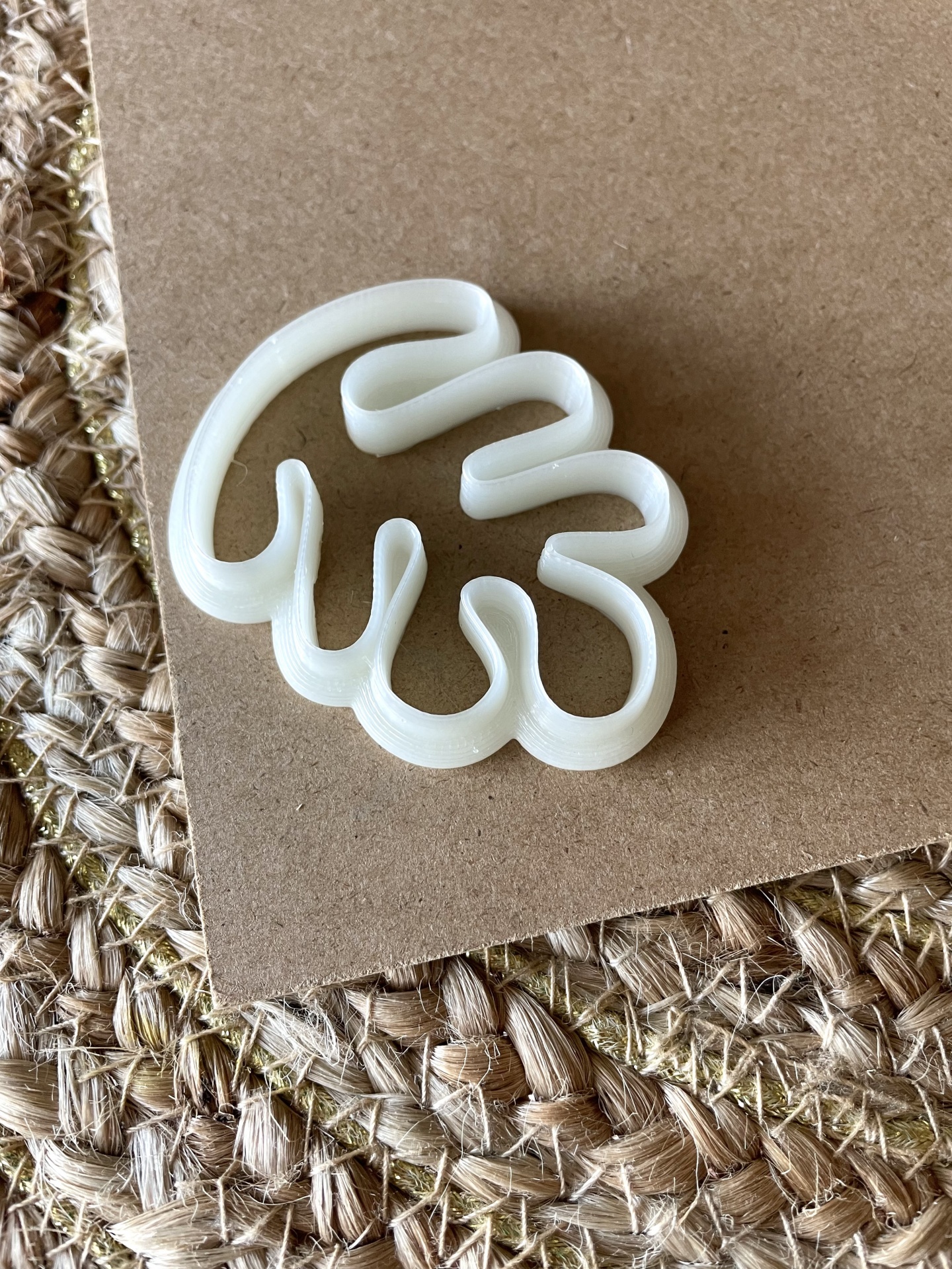 • Cortador de bolachas branco em forma de folha sobre cartão e tapete natural