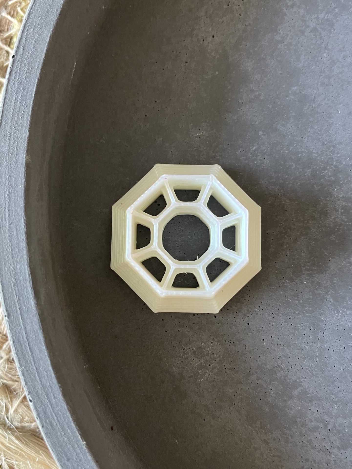 • Elemento octagonal branco sobre superfície cinzenta