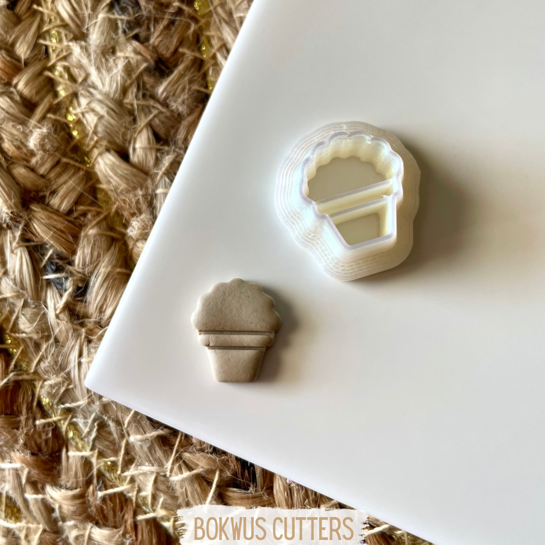 • Cortador de massa forma cupcake bege numa superfície cinza