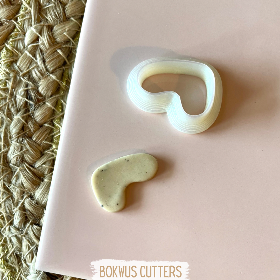 Cortador de biscoitos branco em forma de coração sobre superfície escura