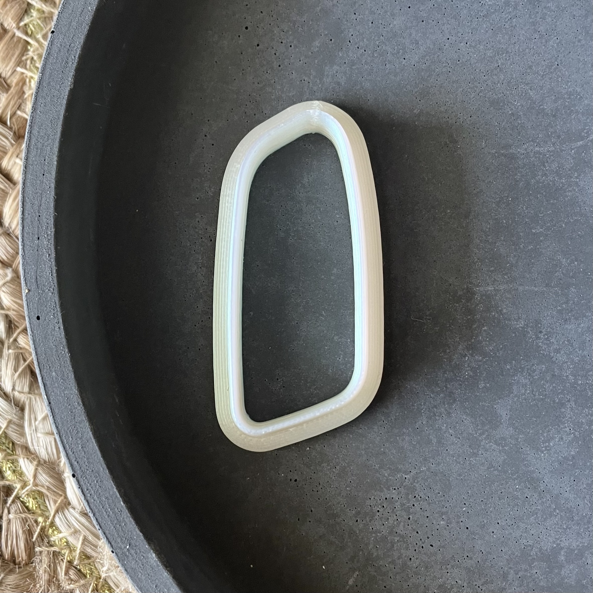 • Molde branco de plástico retangular e peça bege com padrão floral sobre superfície creme e tapete de corda