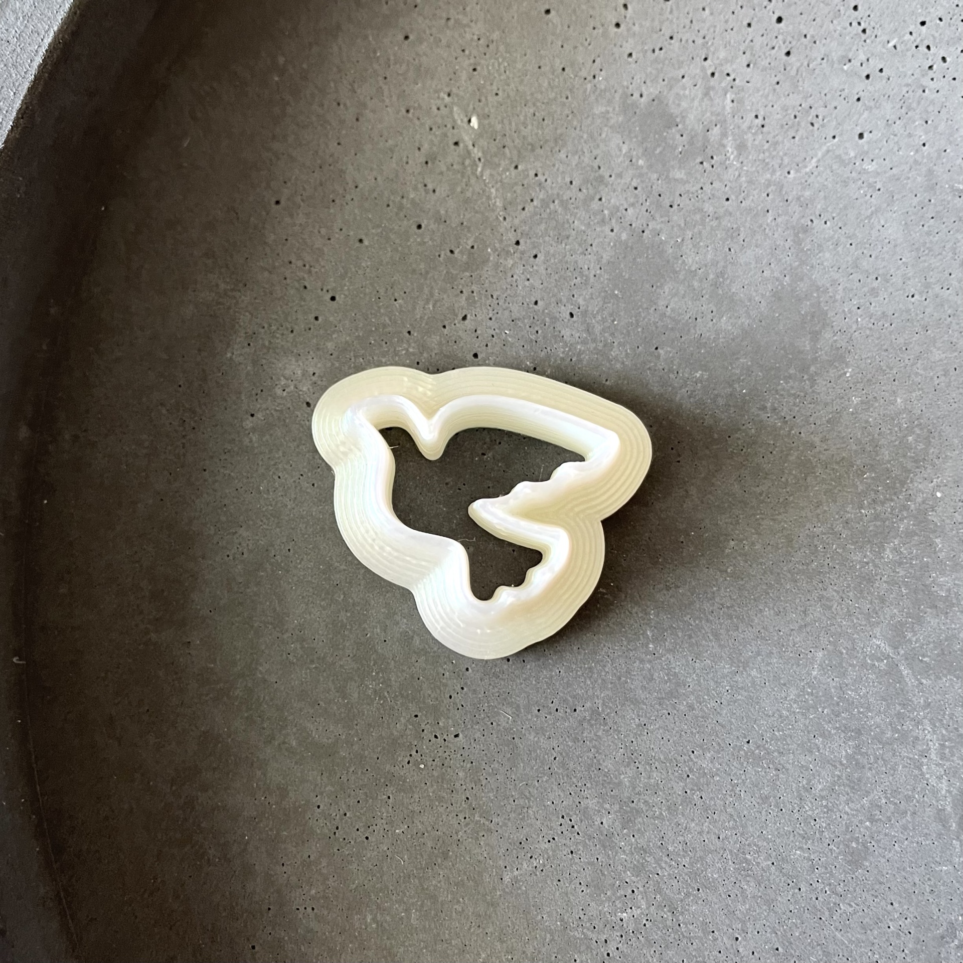 • Forma branca em forma de pomba sobre superfície cinza
