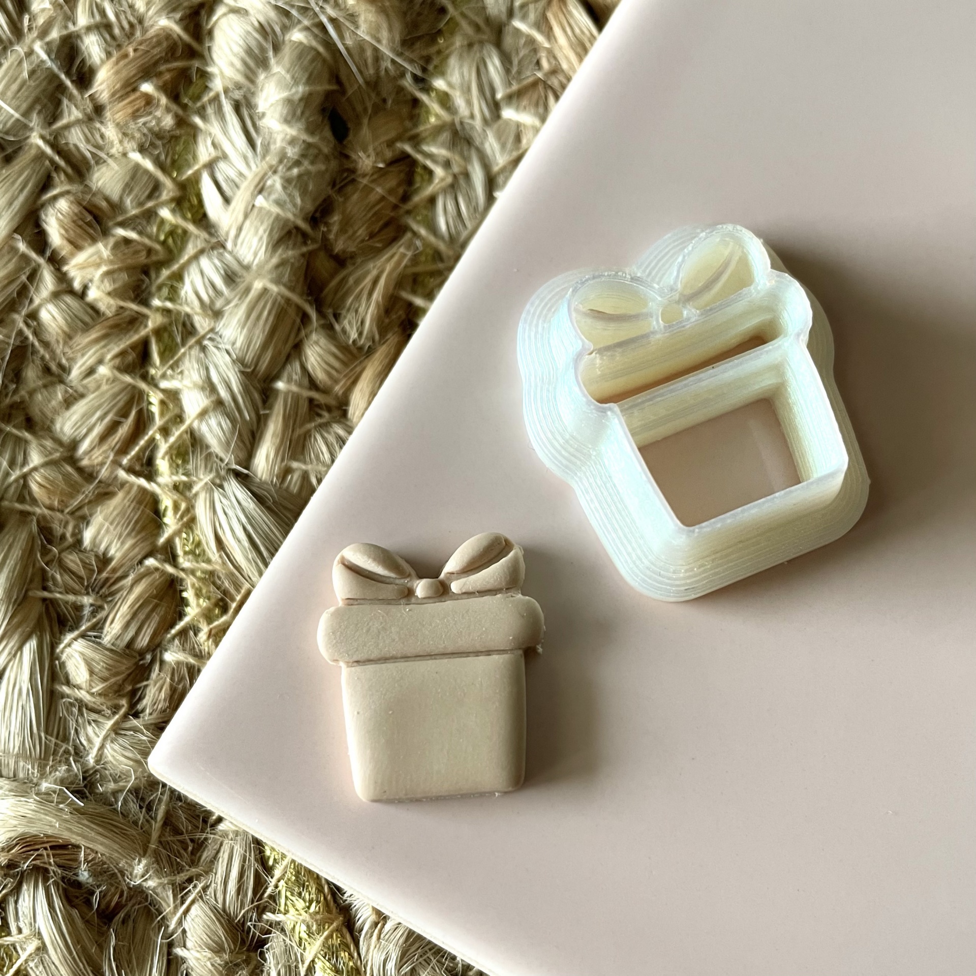 • Cortador de bolachas em forma de presente com bolacha cortada