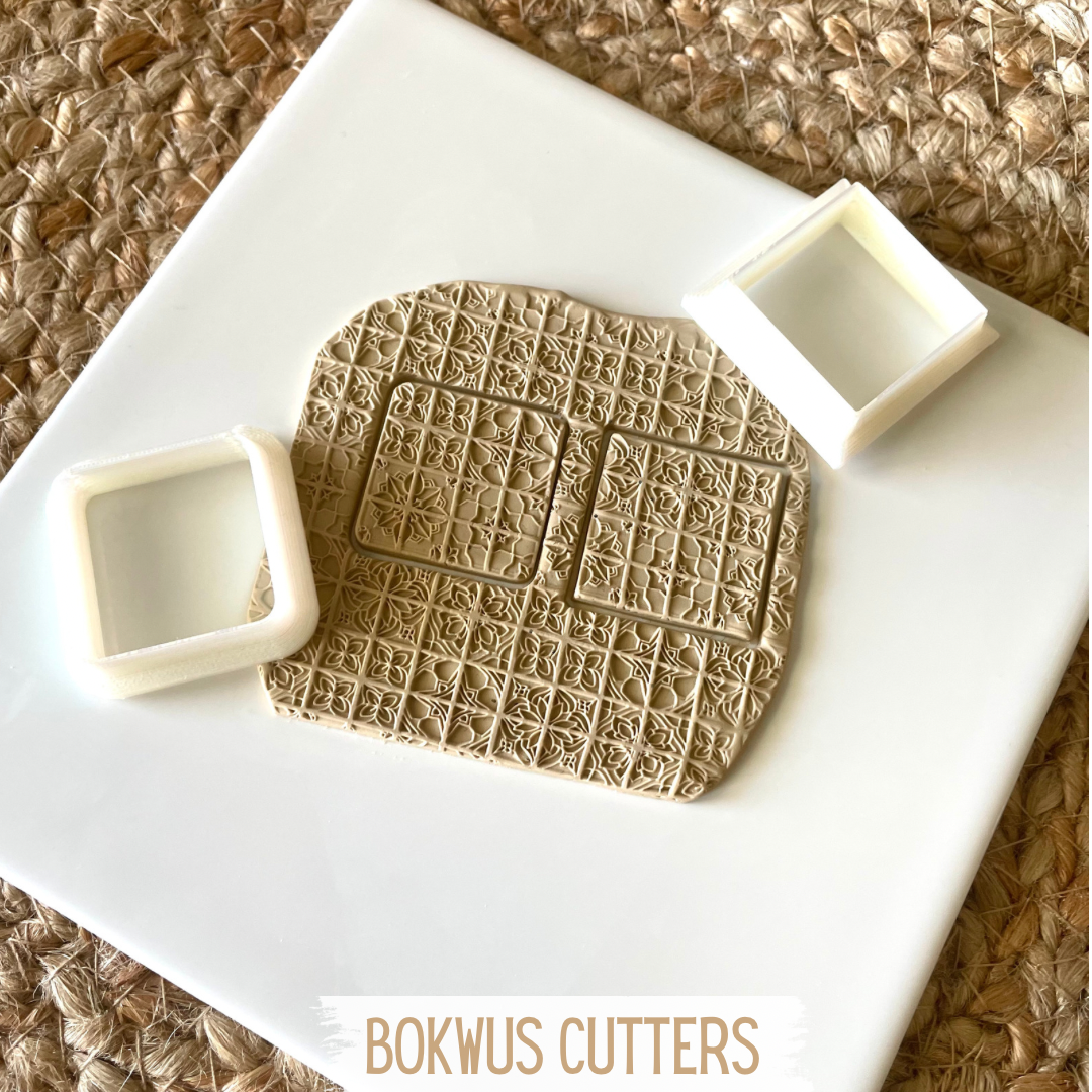 • Cortadores quadrados plásticos brancos com argila estampada em placa branca