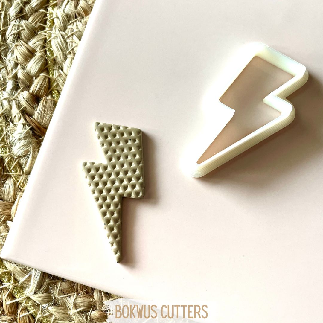 • cortador de bolachas em forma de raio branco num prato cinzento
