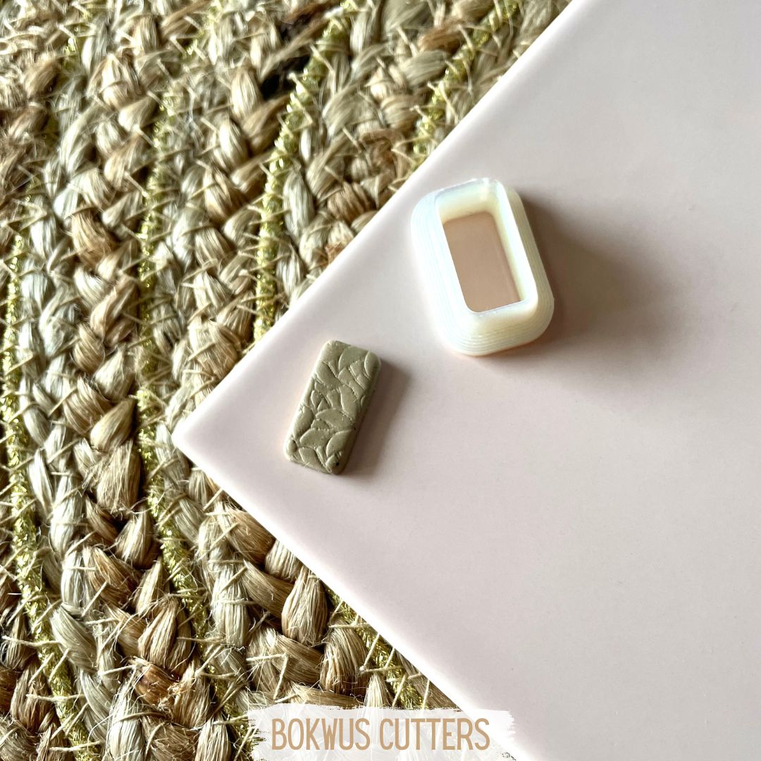 • Cortadores de pastelaria retangulares em plástico branco e cinza com padrão de folhas