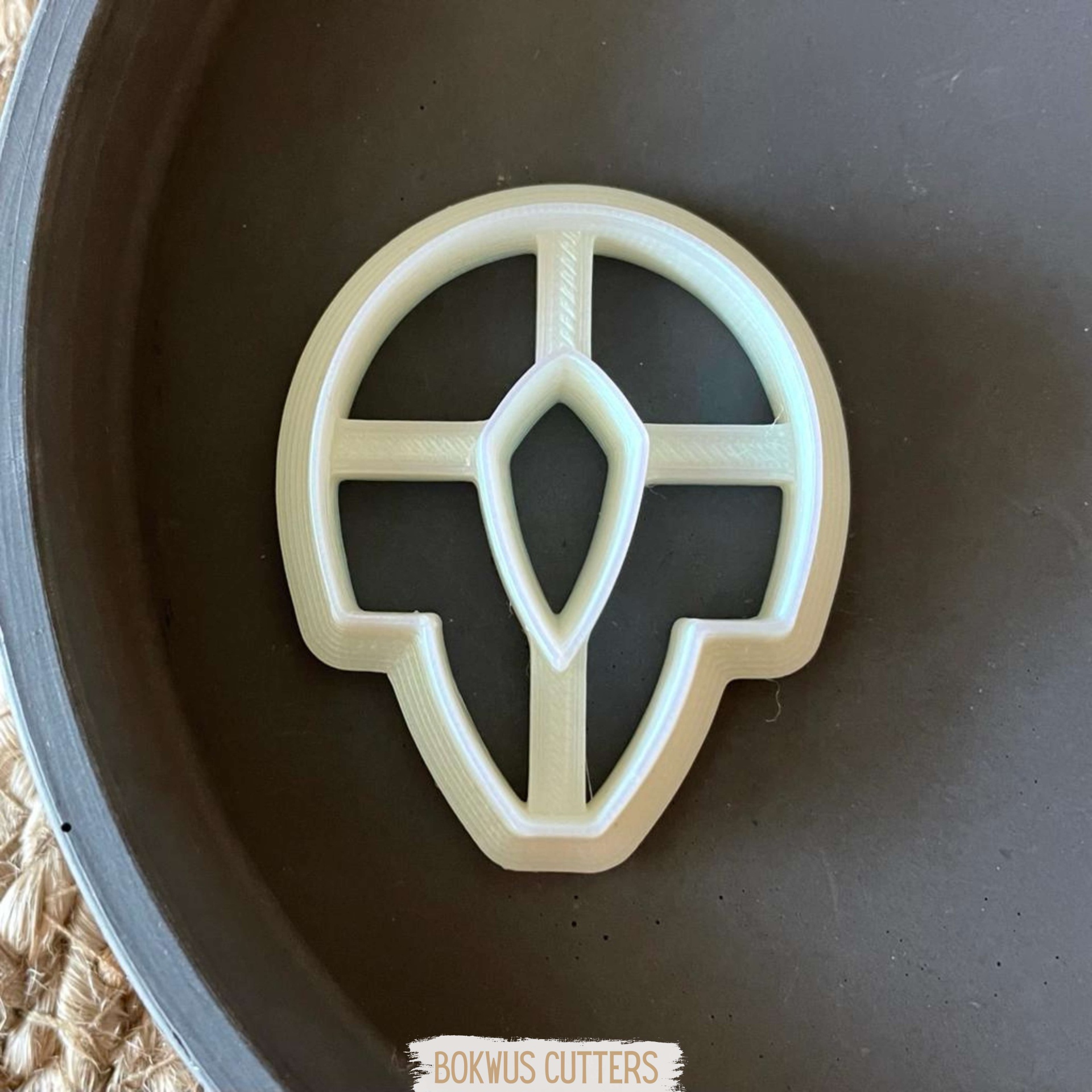 • Cortador de biscoitos branco em forma geométrica na superfície preta