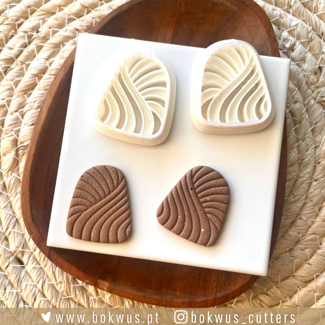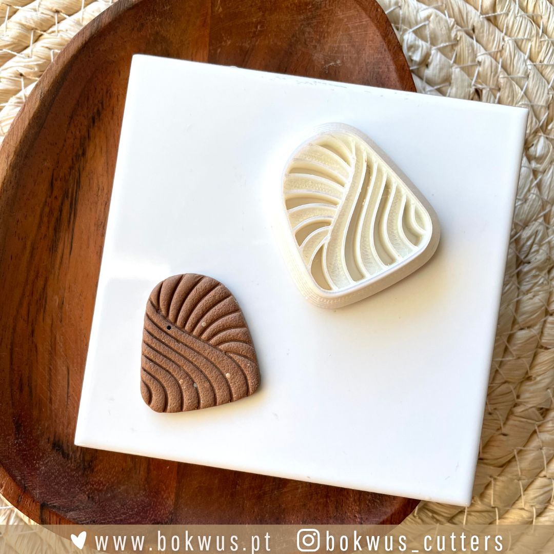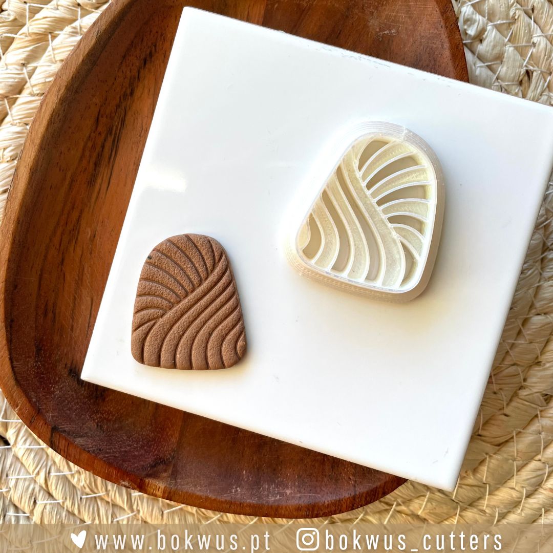 Cortador em formato orgânico e assimétrico para criar brincos modernos e minimalistas em cerâmica plástica.