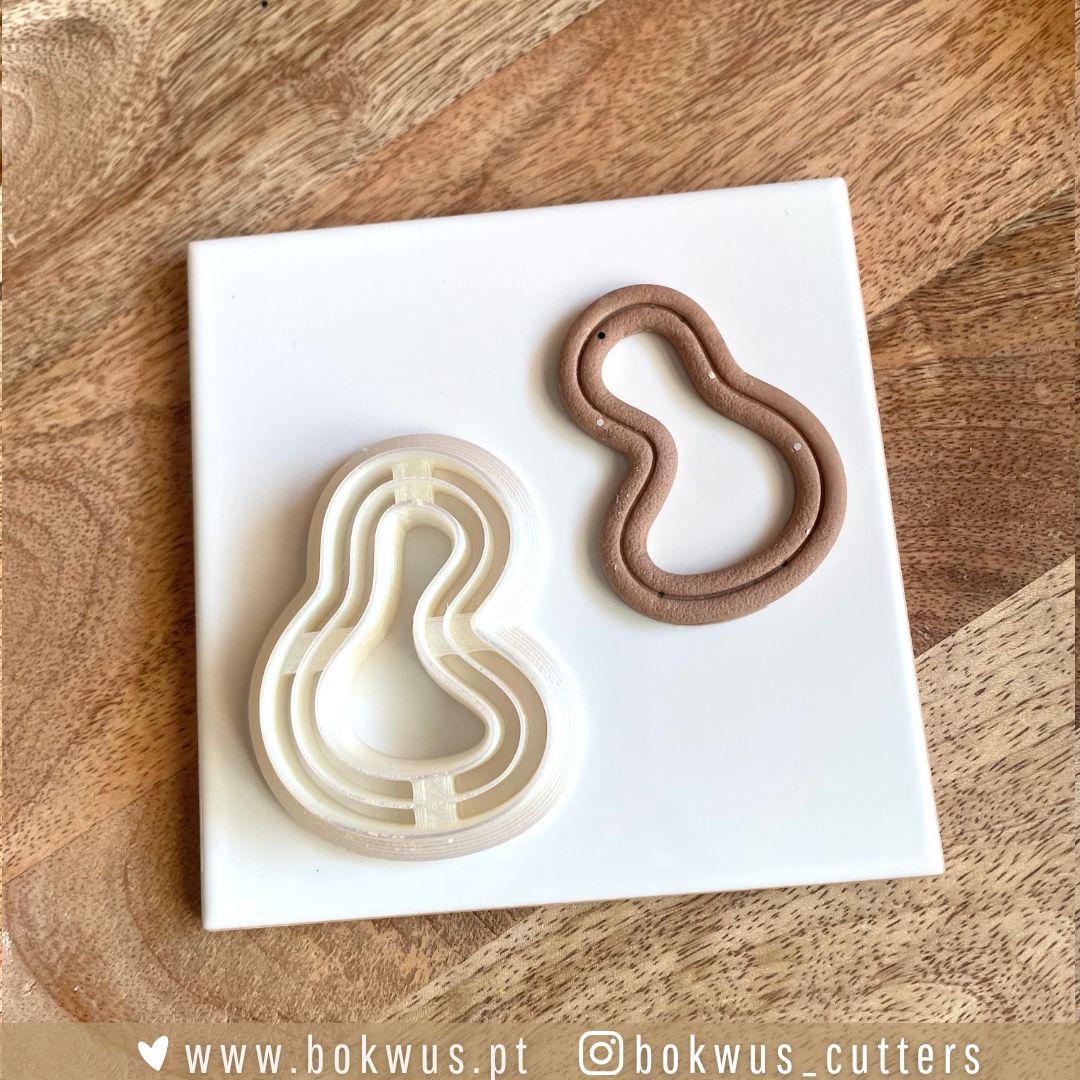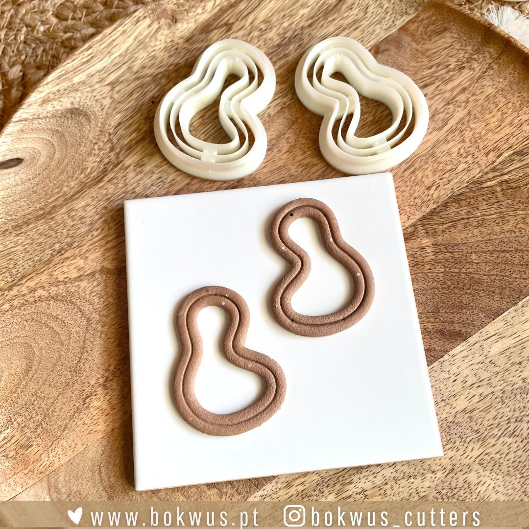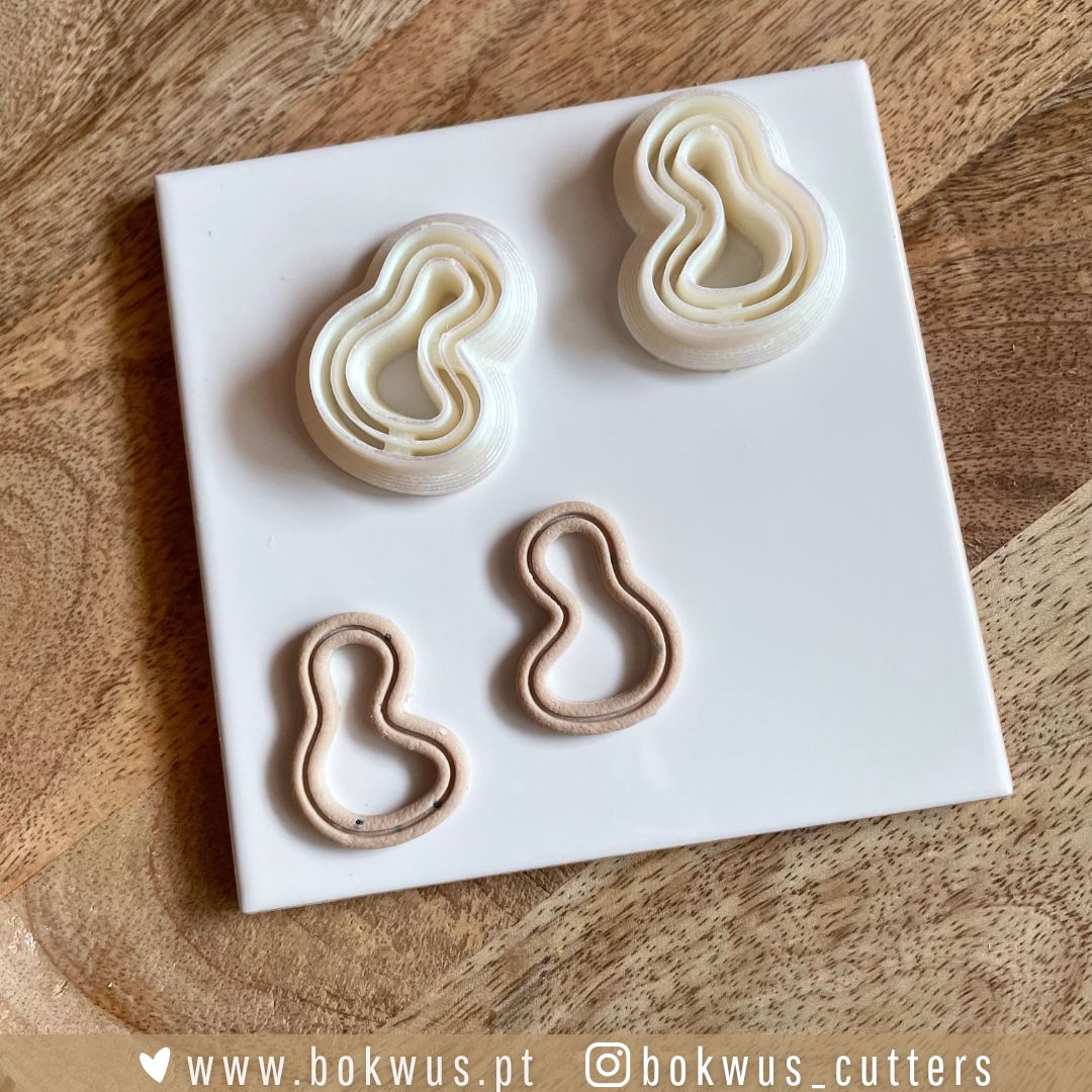 Cortador em formato orgânico e assimétrico para criar brincos modernos e minimalistas em cerâmica plástica.