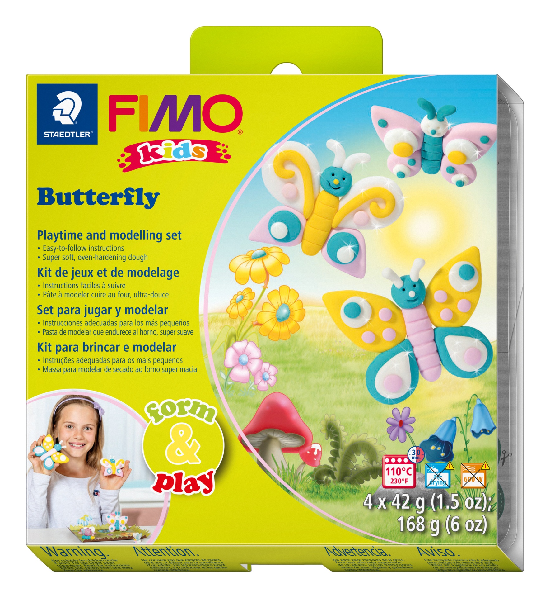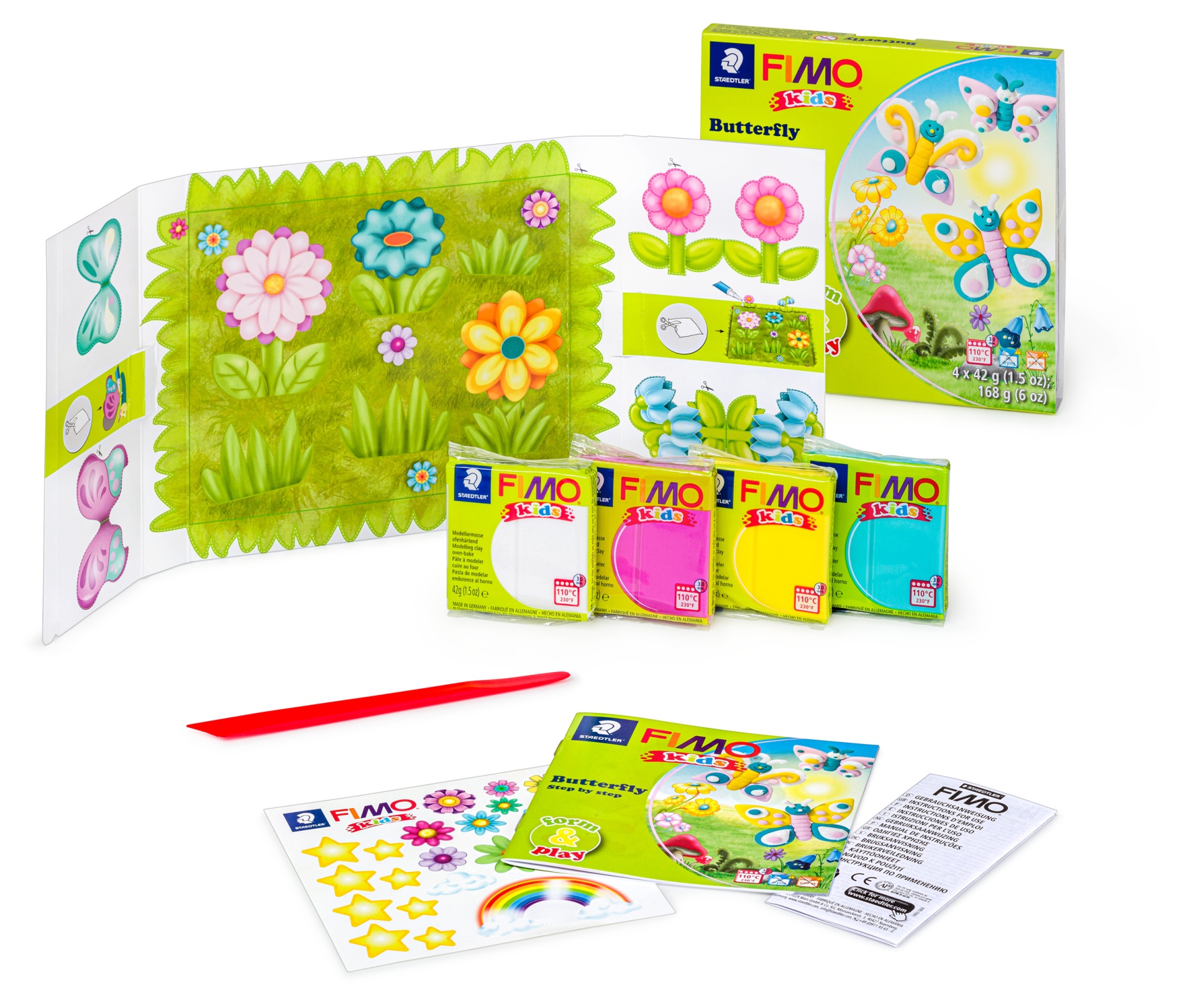 KIT FIMO KIDS - Butterfly 10,43 € 14,90 € Desconto de 30%. IVA incluído. Partilhar Compra este produto e ganha 10 Pontos! Saber mais Comprar Contactar 2 unidades em stock • Form&play - uma combinação para modelar e brincar• Inclui 4 embalagens de 42g de FIMO kids• Massa de modelar especialmente macia• Projetos empolgantes com instruções detalhadas passo a passo• Instruções atrativas e adaptadas às crianças para guardar e colecionar• Estimula: Capacidades motoras finas, criatividade, imaginação e jogos de faz-de-contaCom cenário decorativo para brincar, autocolantes divertidos e modelos cativantes para recortar. Marca FIMO Tags kidscriançasfimo kids