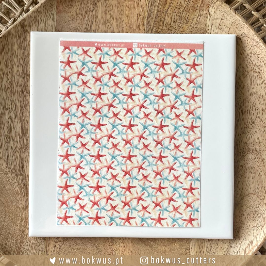 4. Colocar a folha de transferência sobre a massa, com a parte colorida virada para baixo